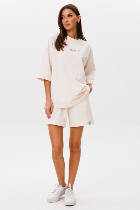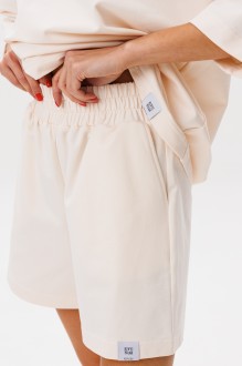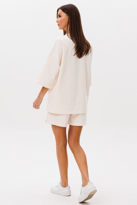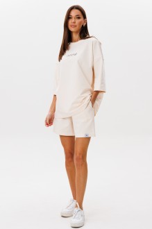 Костюм оверсайз с классическими прямыми шортами средней посадки с карманами в боковых швах. Свитшот оверсайз с приспущенным рукавом Ткань 2-х ниточный футер внутренним слоем из хлопка, качество Пенье, плотность 265 г.м2