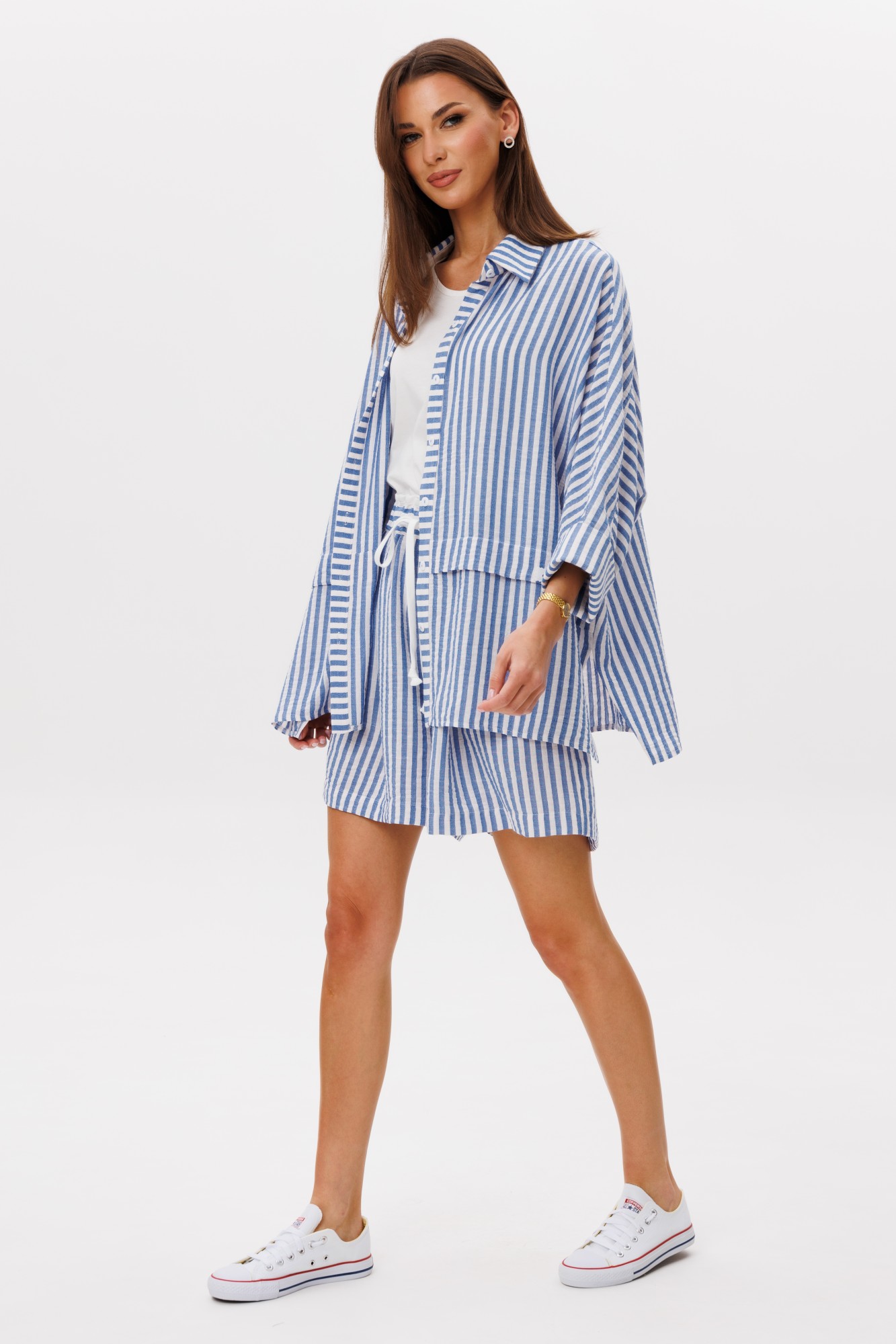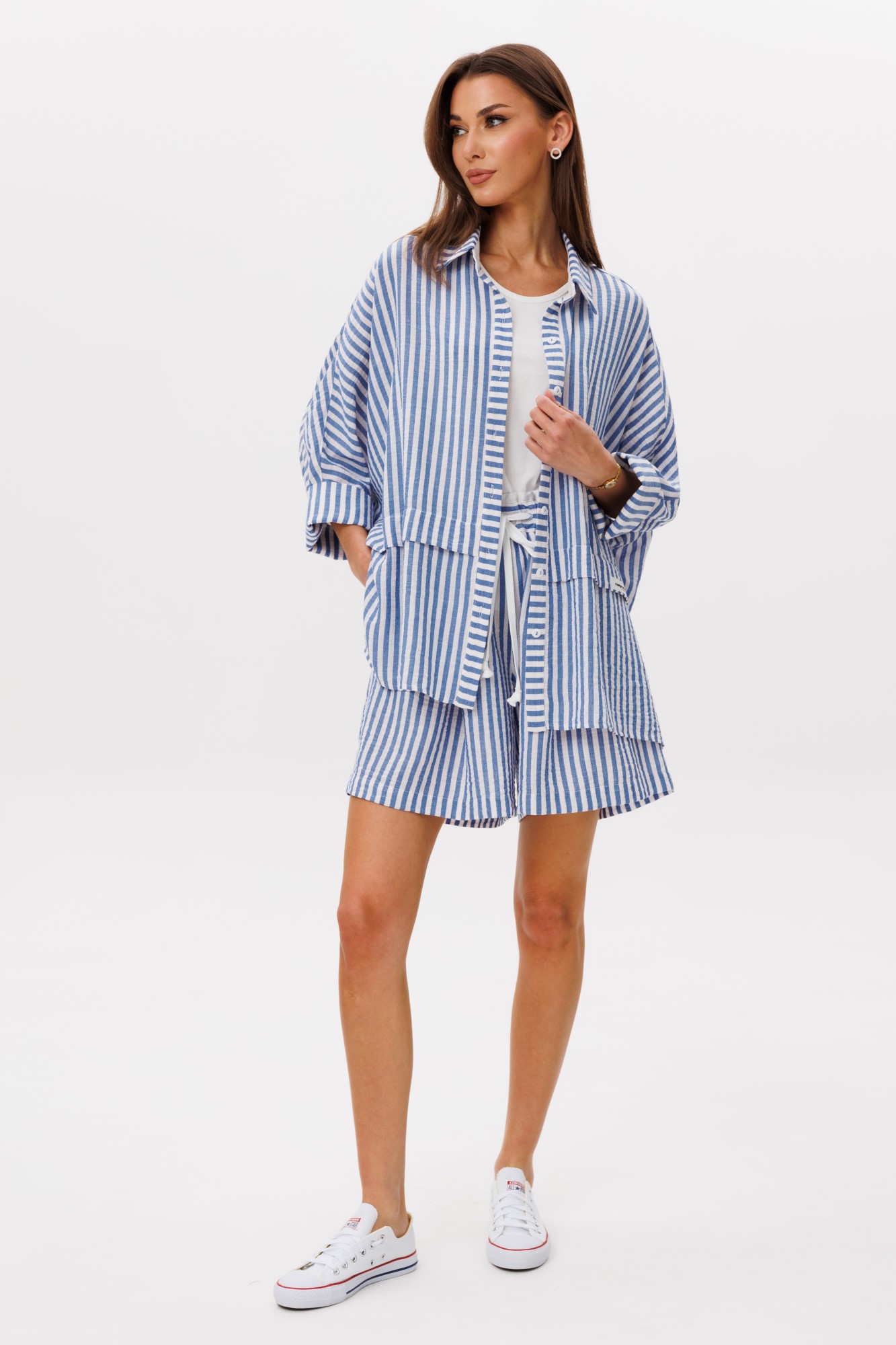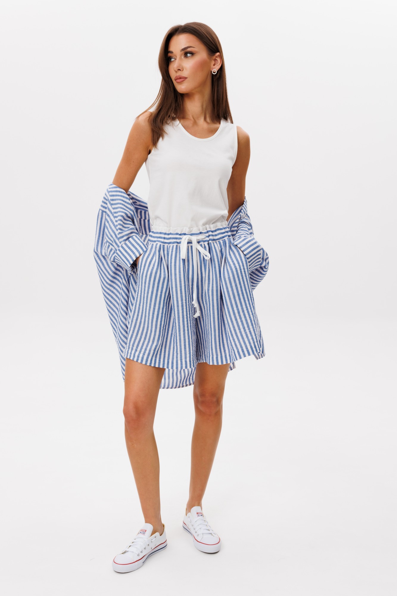 Майка: 92% хлопок, 8% эластан; блузон, шорты: 71% хлопок, 27% п/э, 2% эластан