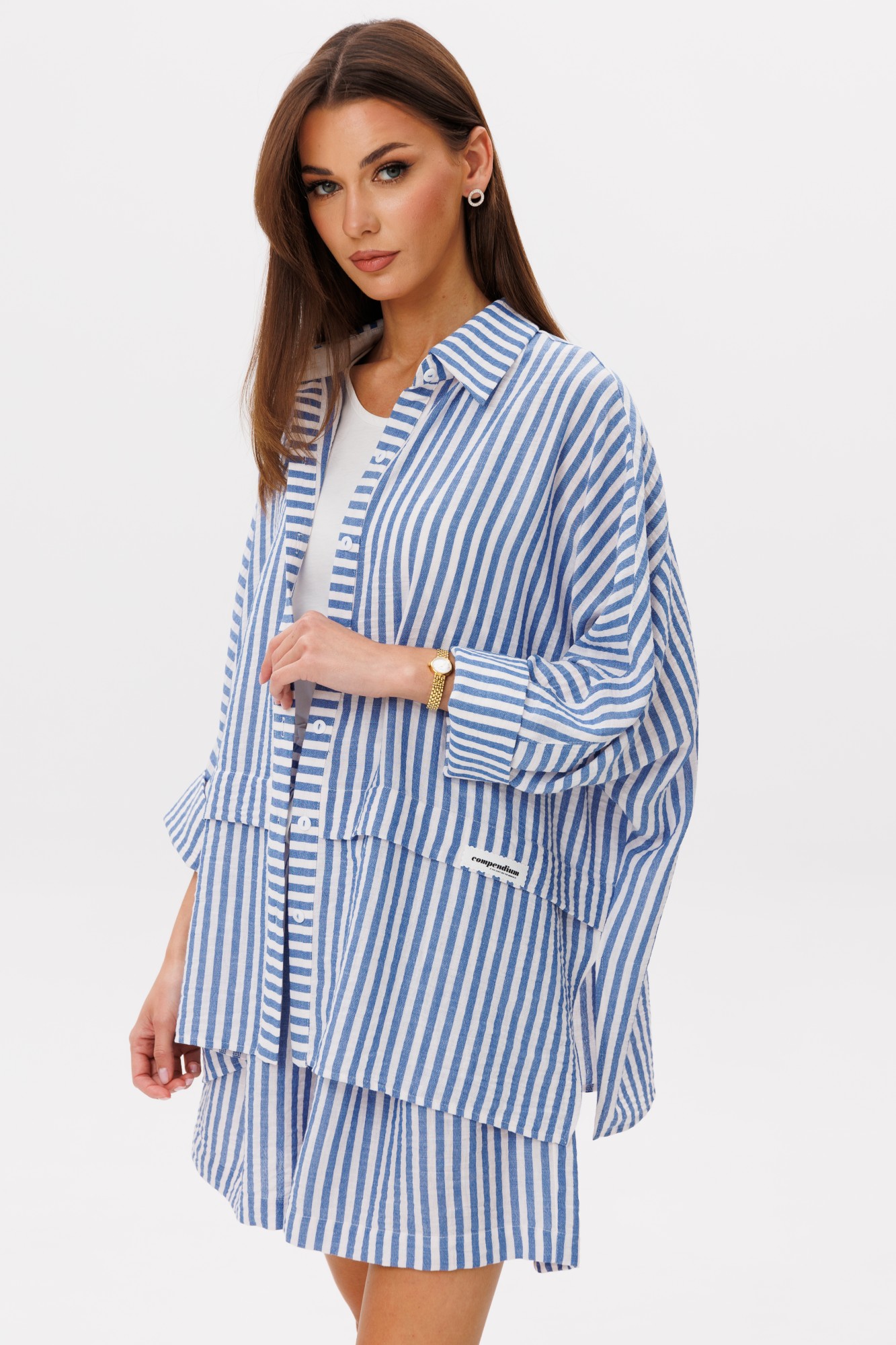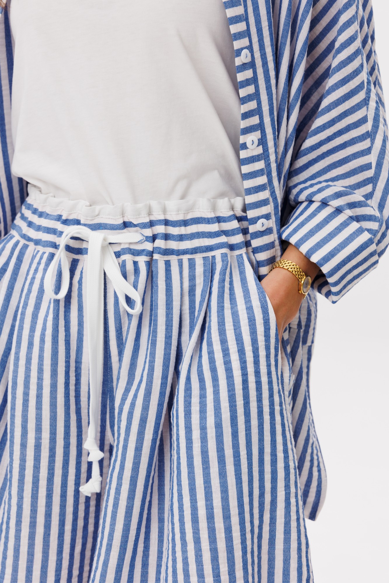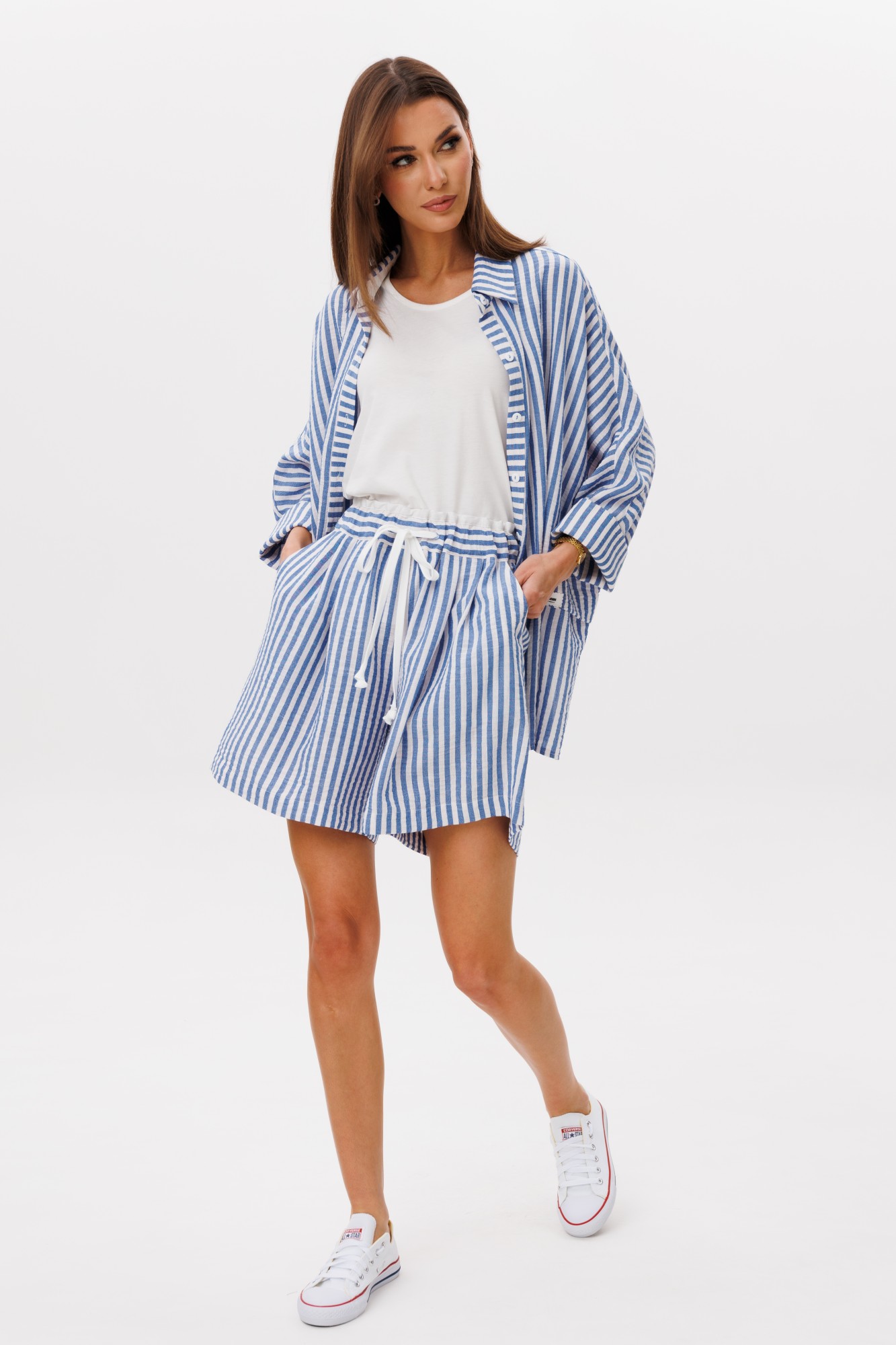 Майка: 92% хлопок, 8% эластан; блузон, шорты: 71% хлопок, 27% п/э, 2% эластан