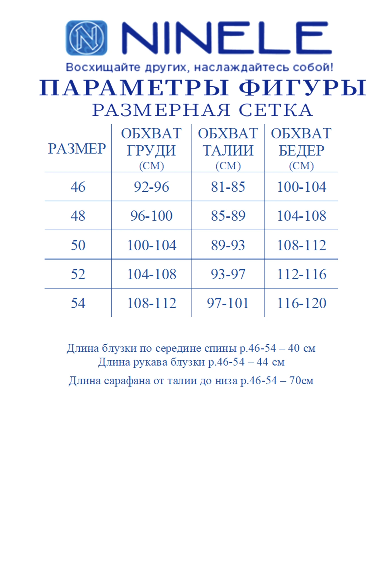Таблица размеров