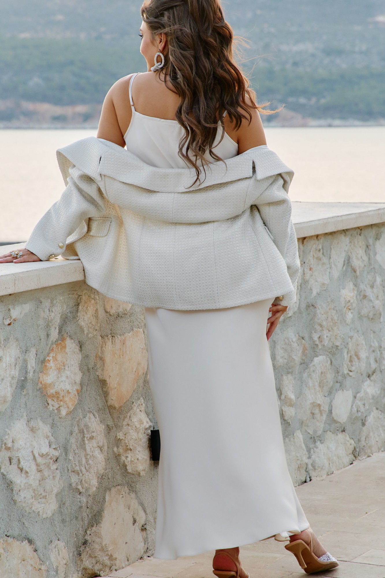 Жакет состав: 48% акрил, 35% полиэстер, 17% хлопок. Платье состав: 100% полиэстер.
