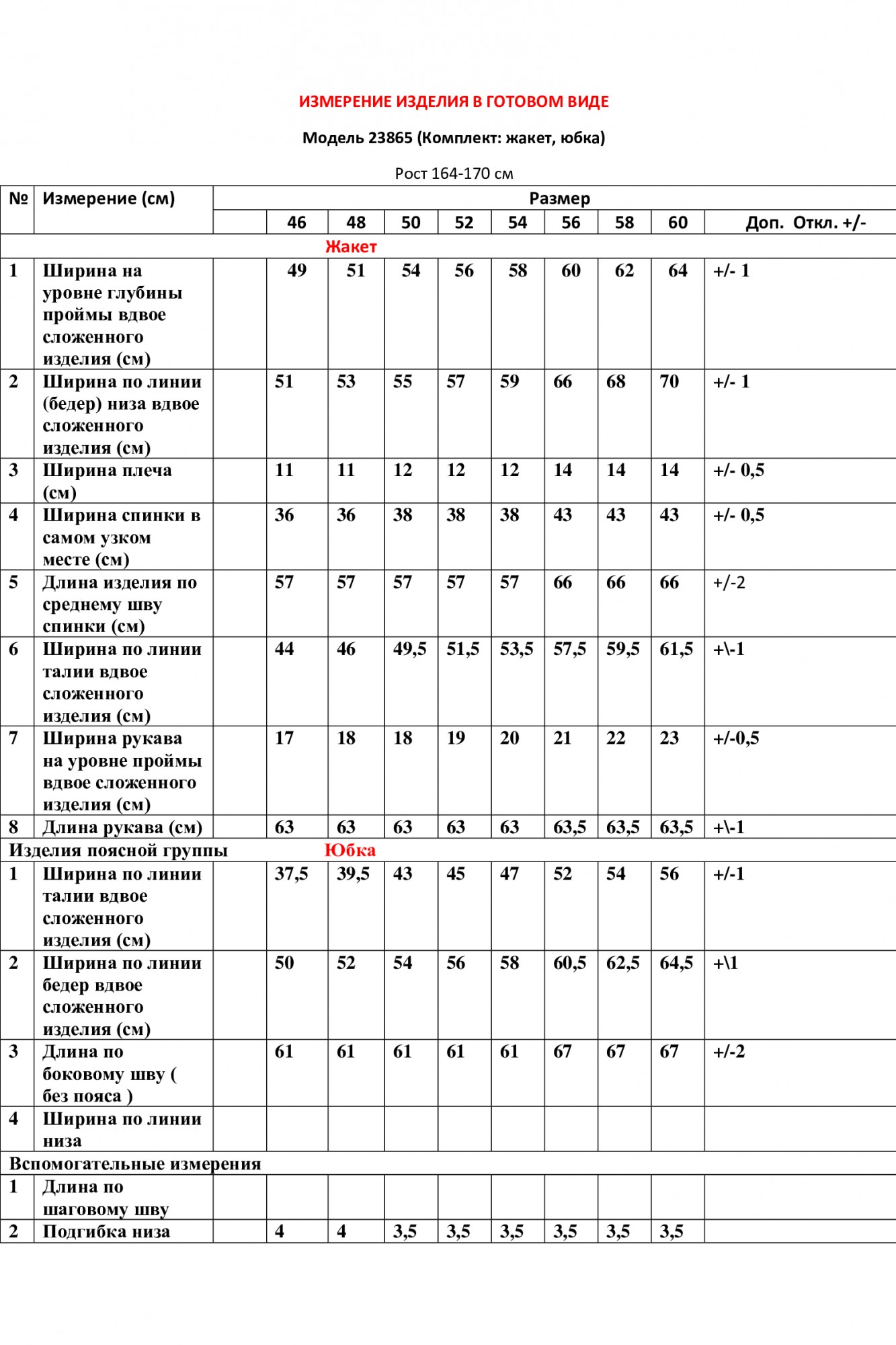 Таблица размеров