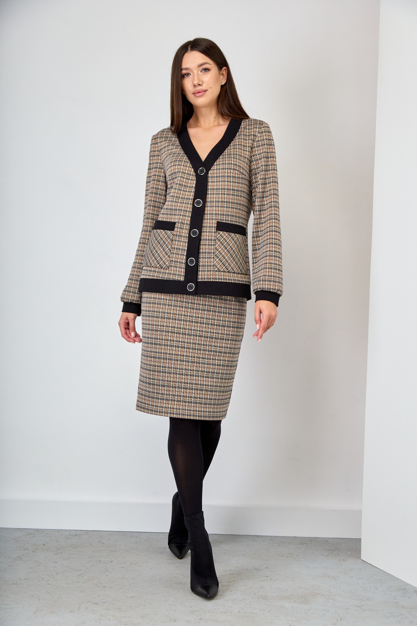 Юбочный костюм Ларс Стиль 739 бежевый, черный с ID товара 353605