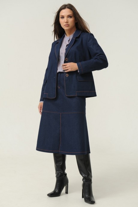 Костюм двухпредметный Ma Сhérie, состоящий из жакета и юбки. Выполнен из джинсовой ткани.