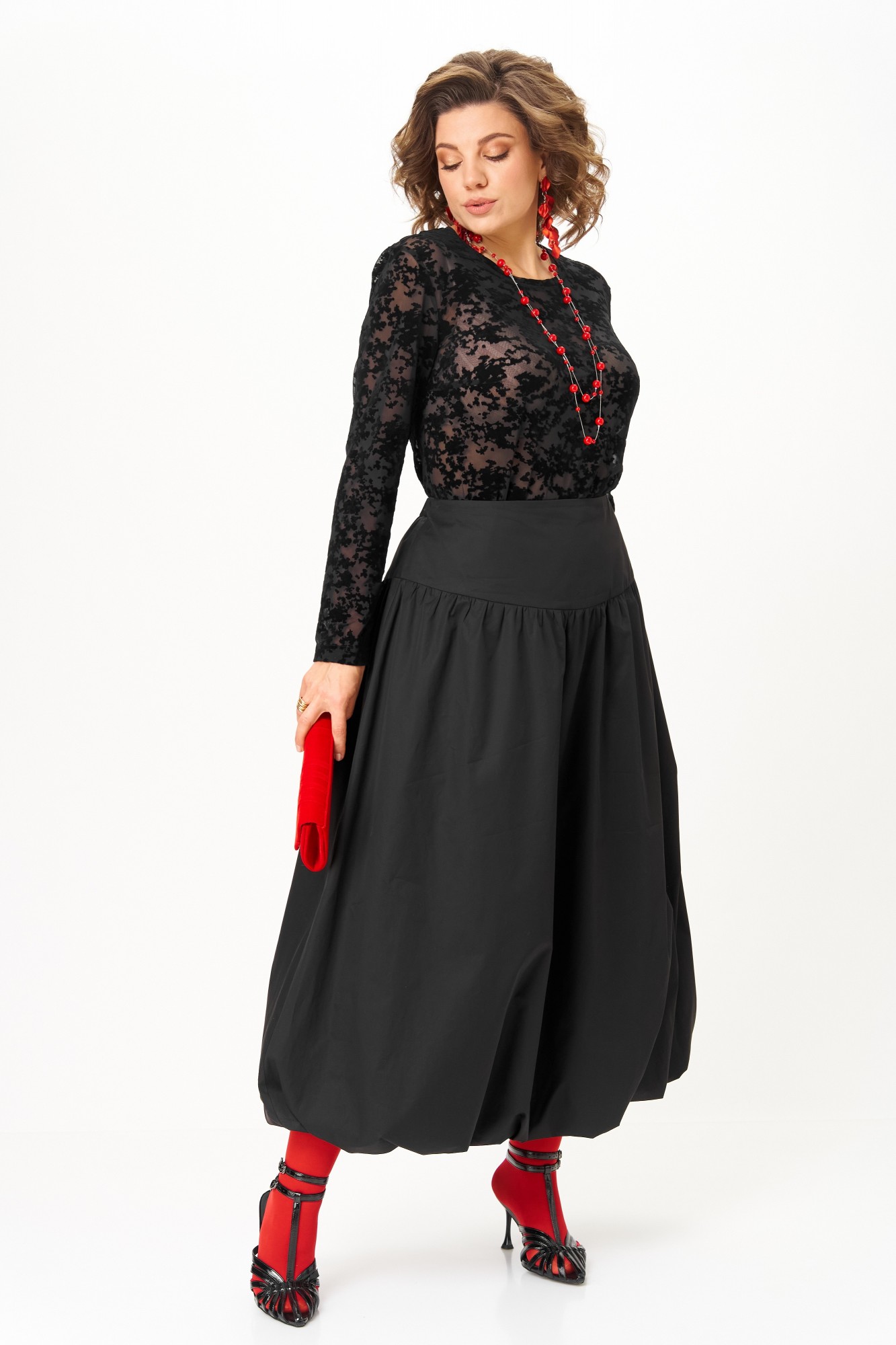 Эффектный комплект-двойка для женщин, которые любят быть в центре внимания. Идеален для торжественных мероприятий, театральных премьер, фотосессий и особых выходов. Комплект построен на игре текстур и контрастов. Топ полуоблегающего силуэта, длина ниже талии. Ткань — тонкая эластичная сетка-стрейч телесно-бежевого цвета. Принт — крупные бархатные (флокированные) розы, выполненные в технике devoré. Рисунок объёмный, бархат мягкий и приятный на ощупь. Горловина круглая, обработана узкой обтачкой. Рукав втачной длинный, заканчивается на запястье. Юбка «баллон» C кокеткой и застежкой в среднем шве заднего полотнища. По поясу спинки резинка, благодаря которой юбка комфортно сидит на любой талии.