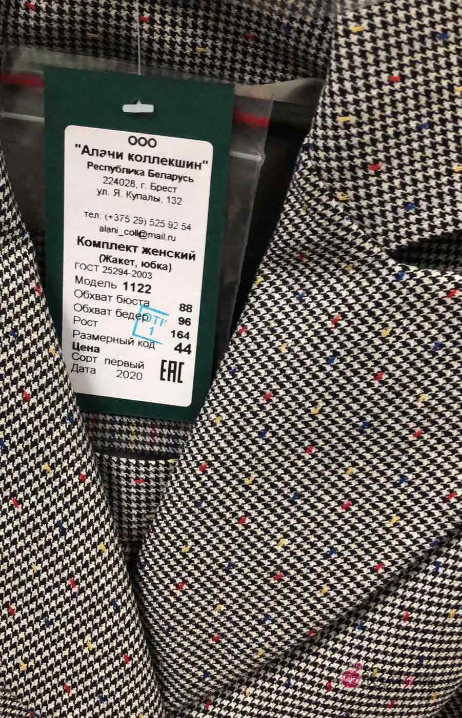 Юбочный костюм ALANI COLLECTION 1122 серый гусиная лапка в цветную точку с ID товара 217667