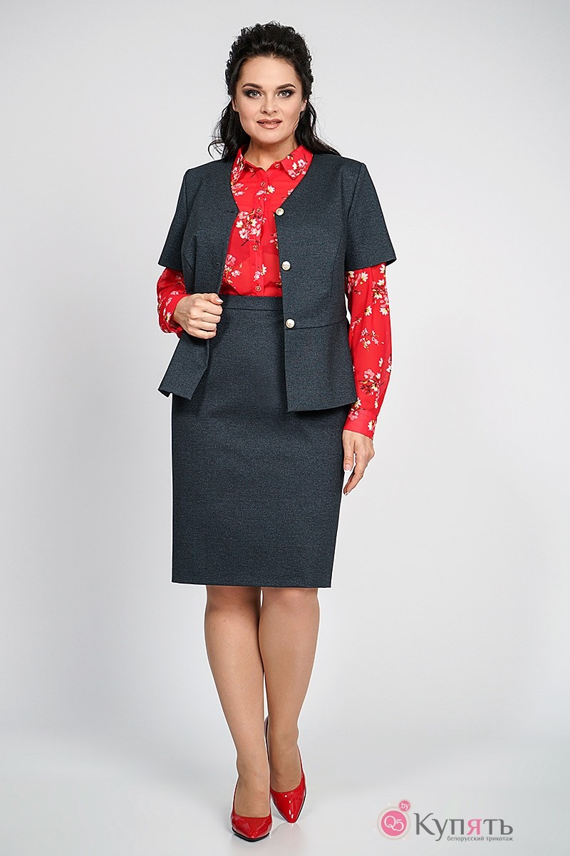 юбка, жакет –трикотаж пэ 70%, вискоза 26%, эластан 4%; блуза-шифон –пэ 100%