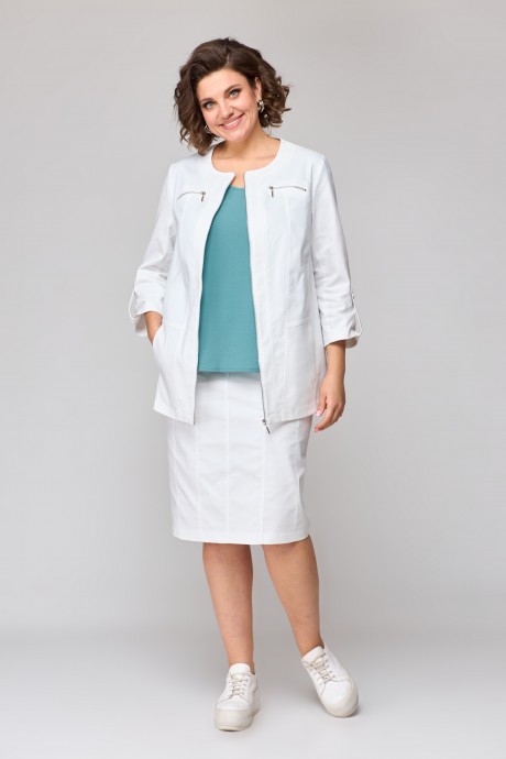 Юбочный костюм ALGRANDA (Novella Sharm) A3970 тройка белый, бирюза