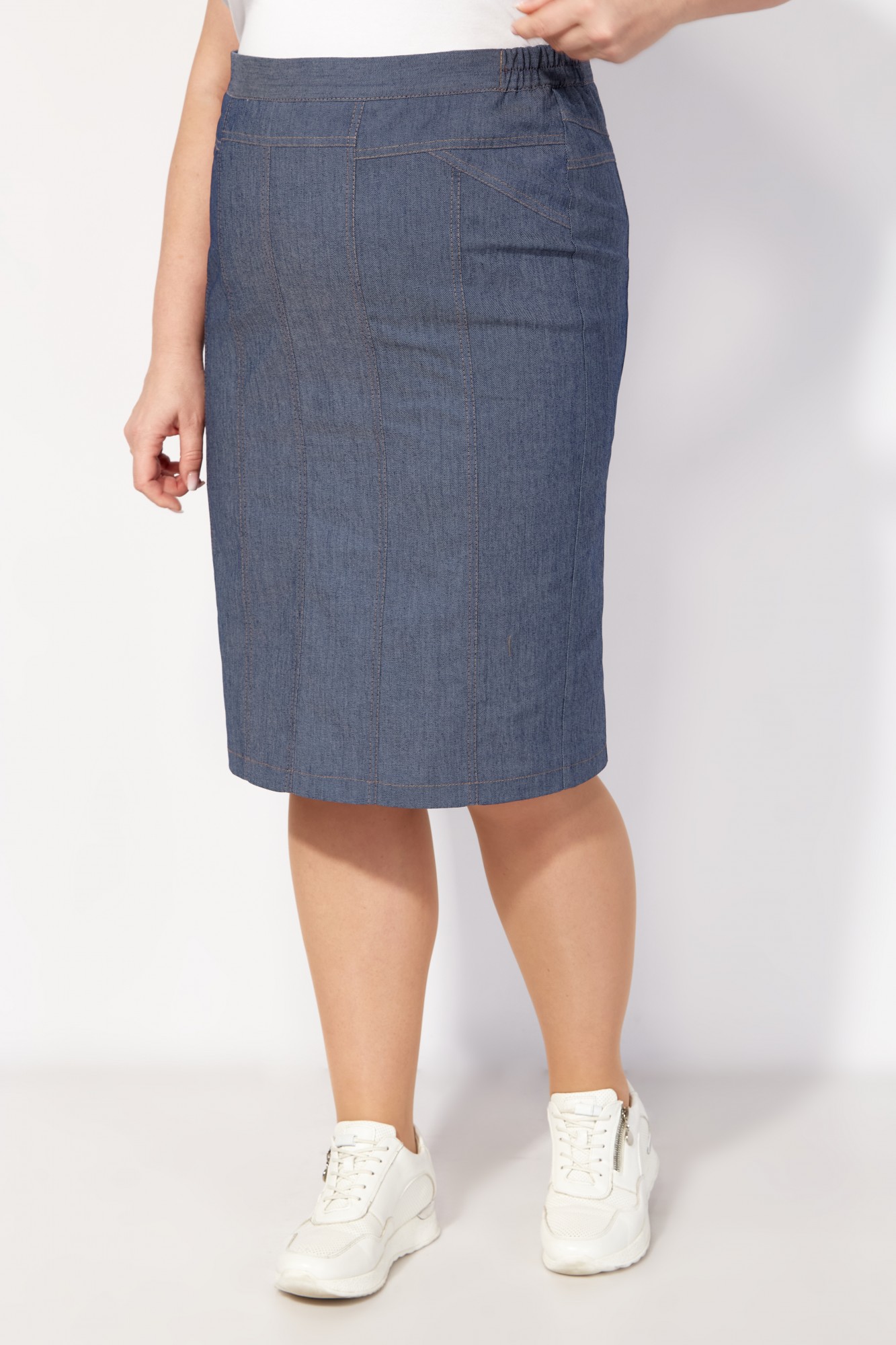 Джинсовый классический женский костюм с жакетом и юбкой. Легкая высококачественная ткань, в составе которой хлопок и полиэстер, делает изделие прочным и долговечным. Элегантная юбка со шлицей сзади имеет полуприлегающий силуэт. По юбке и жакету выполнены отделочные строчки на двухигольной машине. Жакет прямого силуэта, с округлой горловиной и функциональной застежкой на молнию по центру; на уровне груди выполнены карманы-обманки с молнией, а в рельефе на уровне талии - функциональные карманы. Этот джинсовый жакет Вы можете надеть как на платье, так и под брюки, что позволяет создать несколько образов. Также юбку можно скомбинировать с блузой, джемпером или майкой. Стильный костюм подчеркнёт Вашу фигуру, подойдет как для высоких, так и для невысоких женщин. Костюм сделает Ваш образ модным и элегантным. В этом костюме Вы будете выглядеть безупречно как на дне рождения, так и на работе.