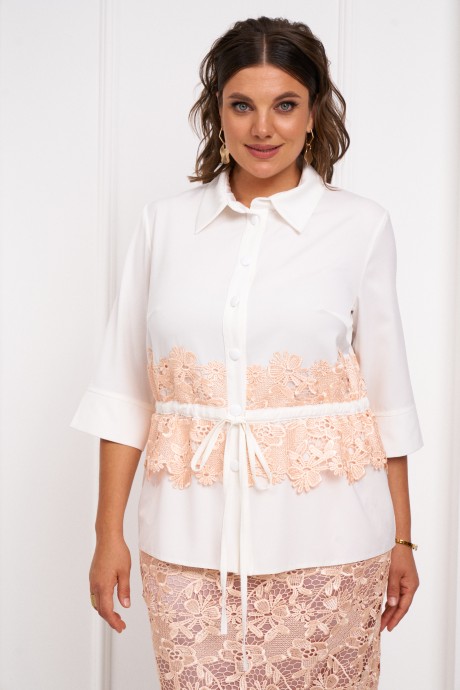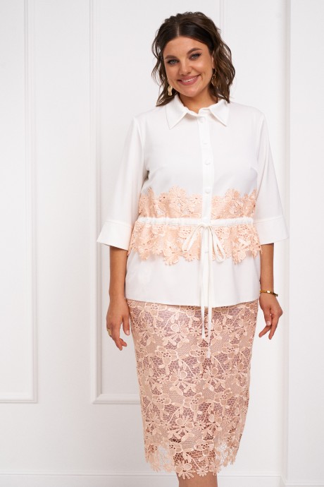 Юбочный костюм Almirastyle 301 двойка белый, розовый