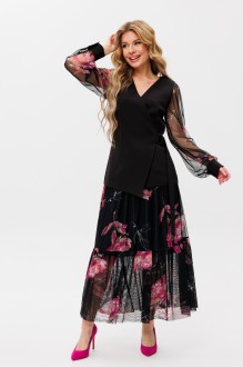 Юбочный костюм AmberA Style 2055 -1 черный, фуксия