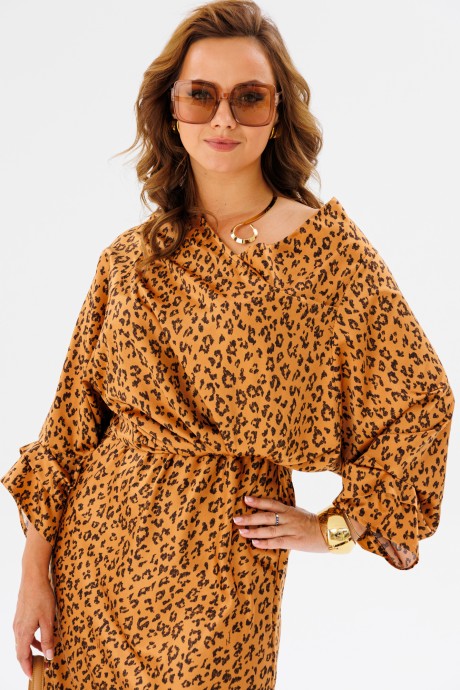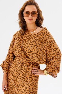 Юбочный костюм Anastasia м-1158 оранжевый, принт леопард