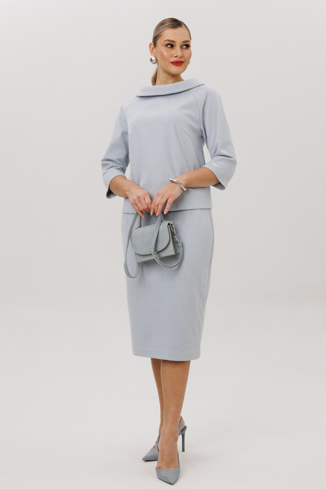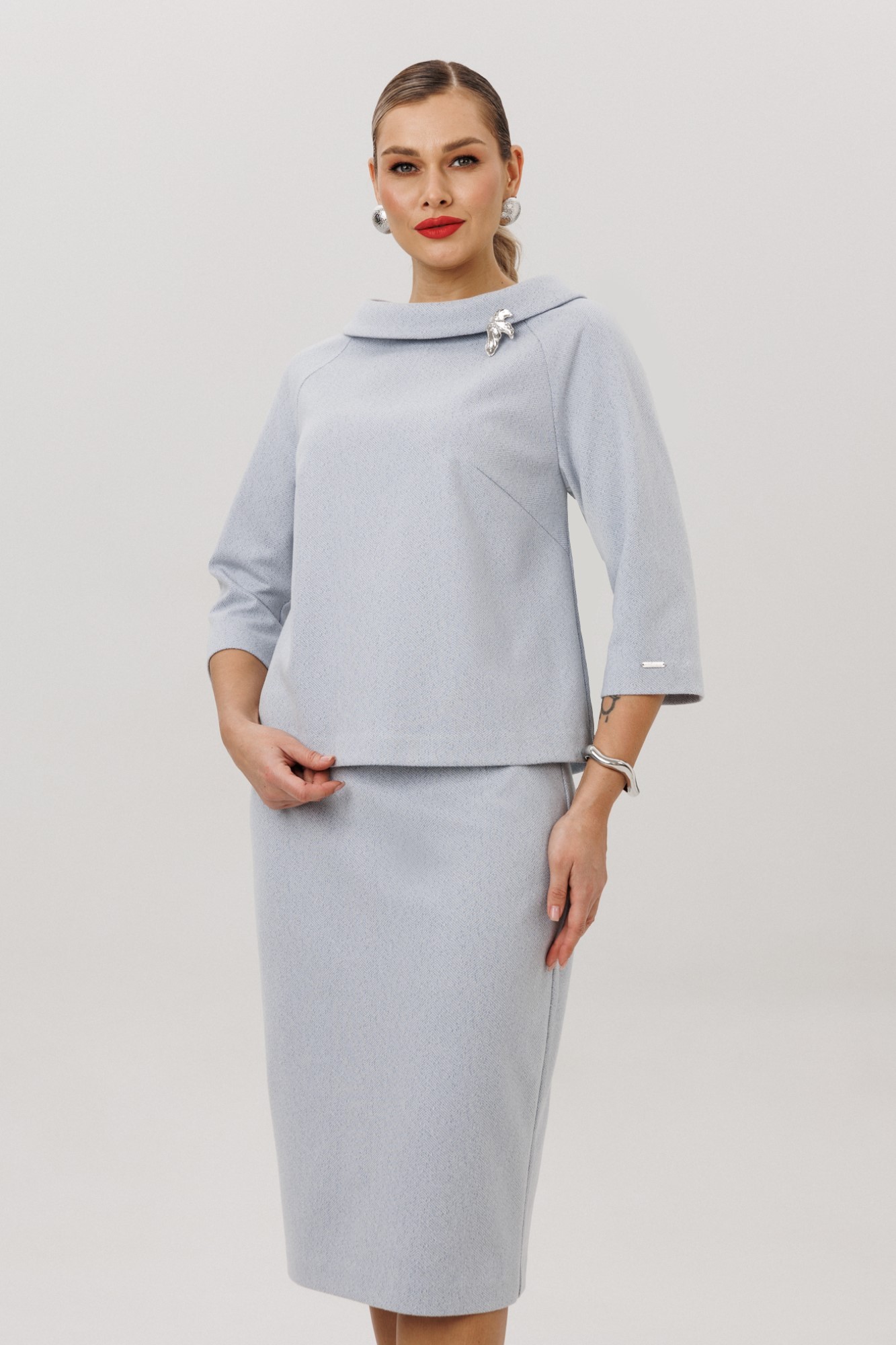 Юбочный костюм Anastasia м-1163 двойка серо-голубой