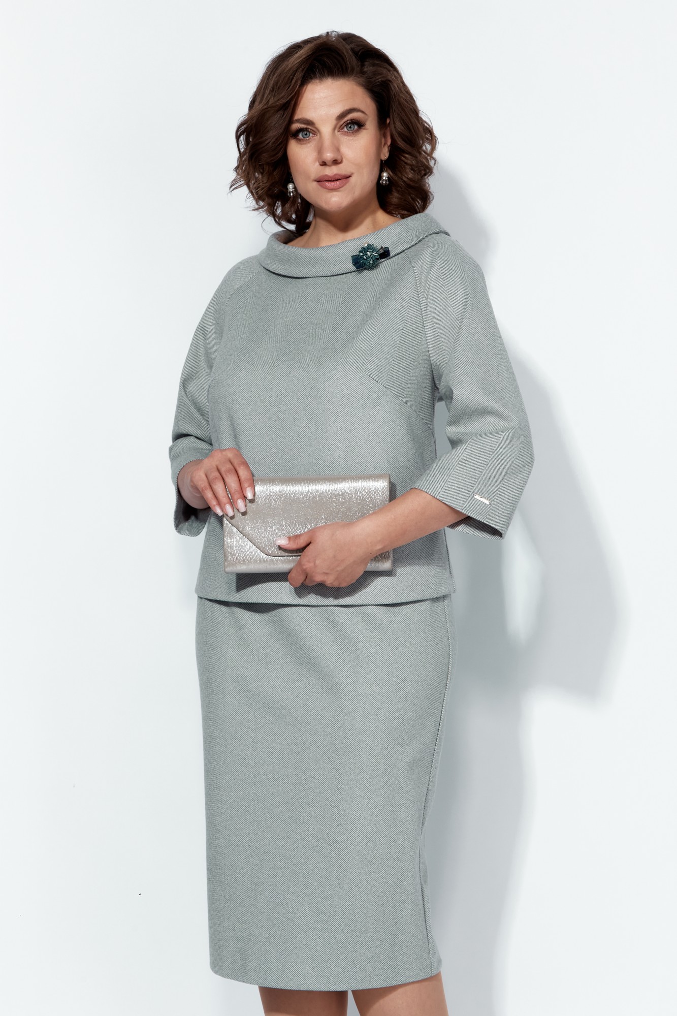 Юбочный костюм Anastasia м-1163 оливково-серый с ID товара 405812