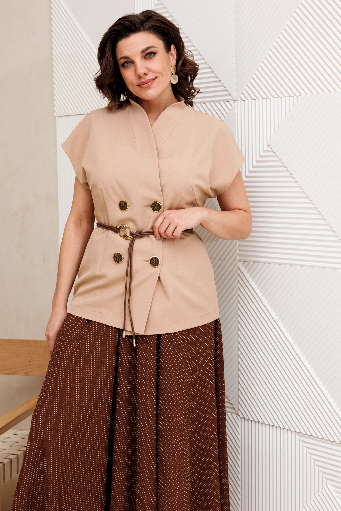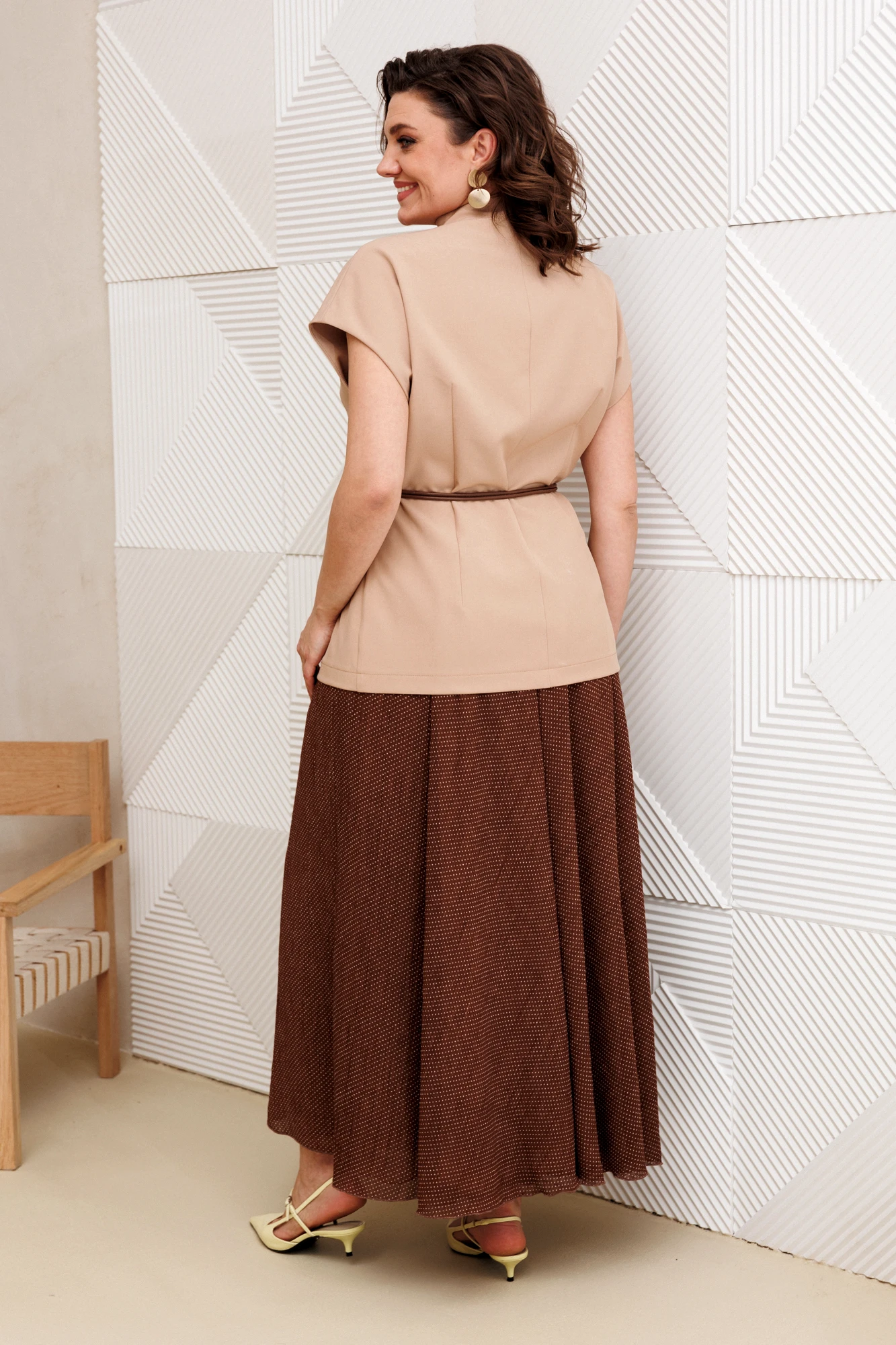 Юбочный костюм Anastasia м-1347 бежевый, шоколад