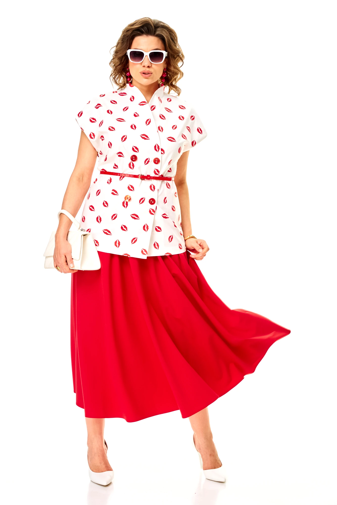 Жилетка: хлопок-92%, спандекс- 8%, юбка: полиэстер -70%, вискоза-28%, спандекс-2%
