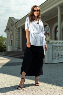 Костюм женский состоящий из жакета и платья. жакет-кимоно прямого силуэта, со спущенными плечами, воротник пиджачного типа, на центральной застёжке на петли и пуговицы, со съёмным поясом. по боковым швам обработаны разрезы. платье на завязывающихся бретелях, что позволяет индивидуально подогнать платье по удобству , с нагрудной вытачкой, по полочке выреза красивое кружево. платье по низу с притачным воланом со сборкой.