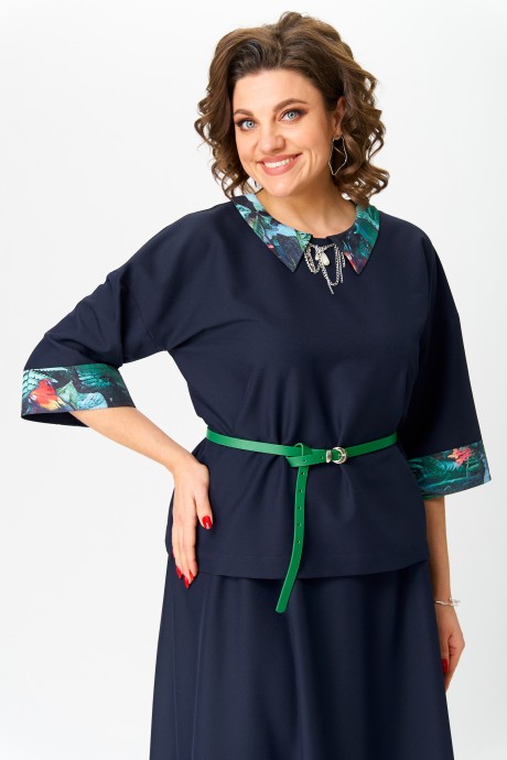 Костюм женский двухпредметный, состоит из юбки длины миди и блузки.