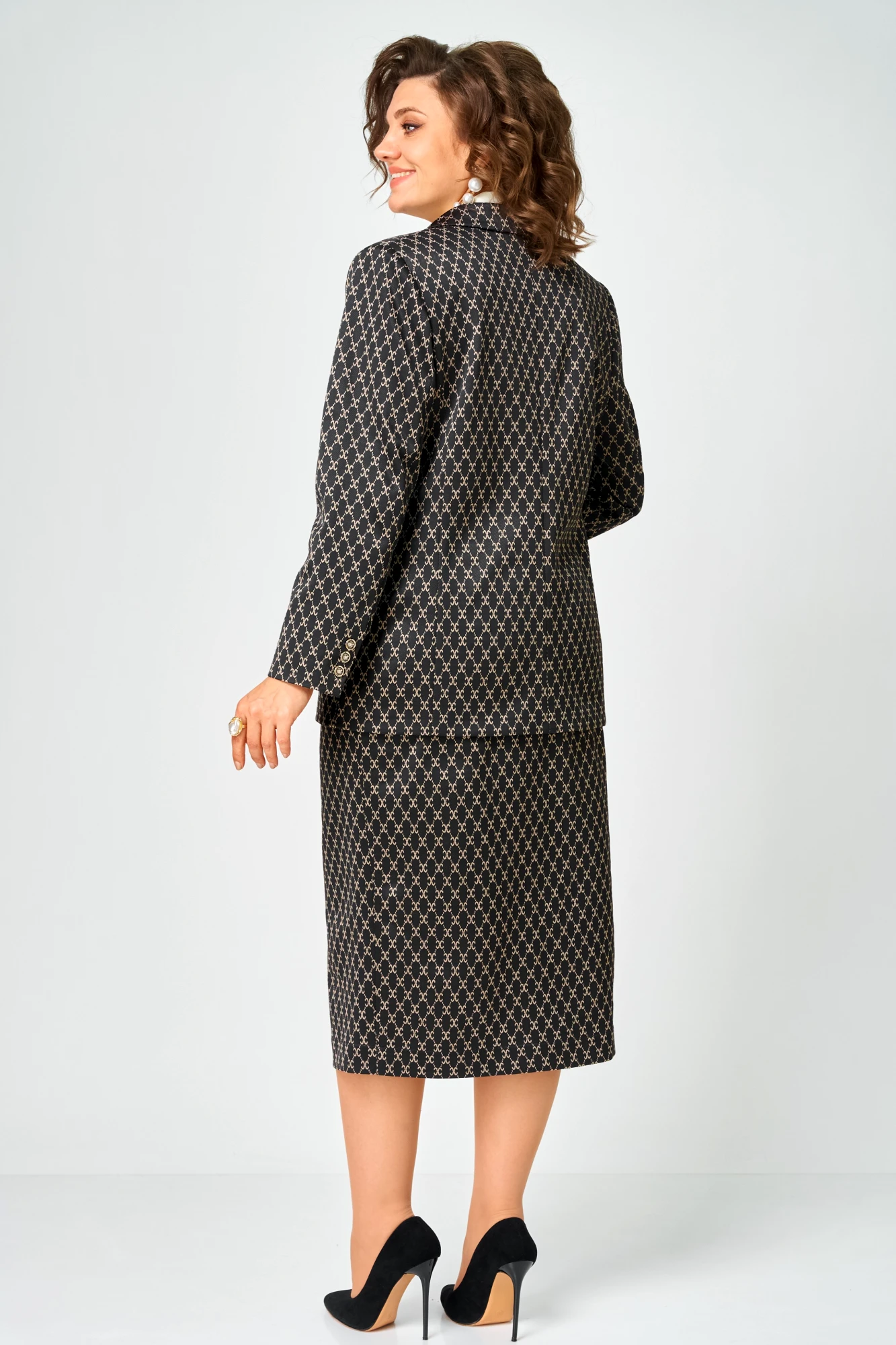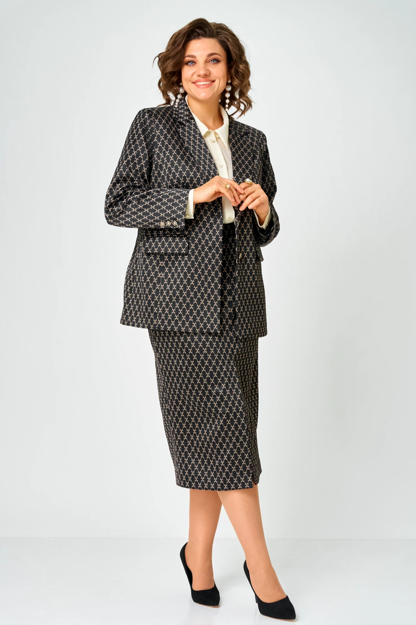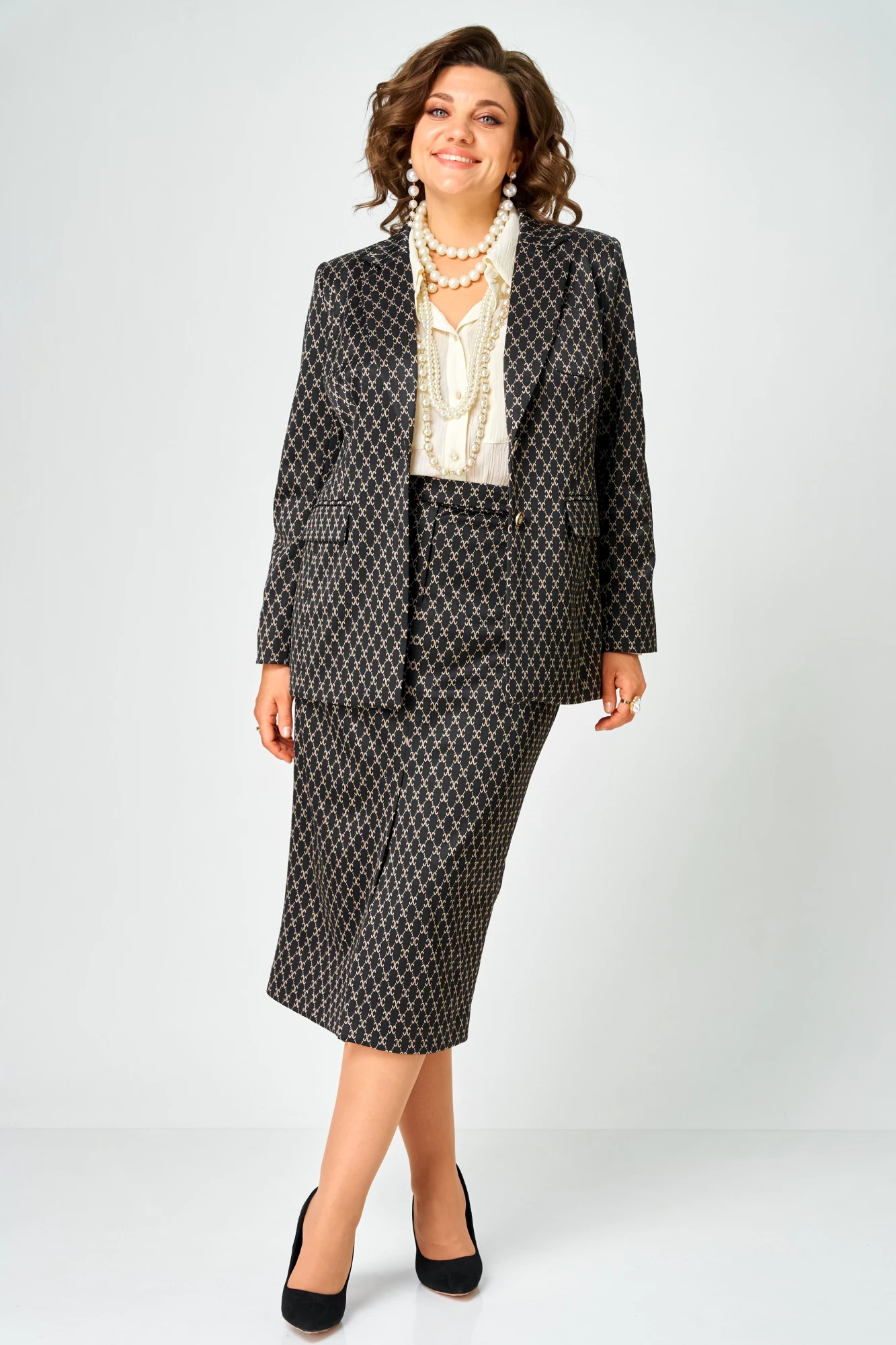 Юбочный костюм ANDINA CITY 9085-1 двойка чёрный с бежевым