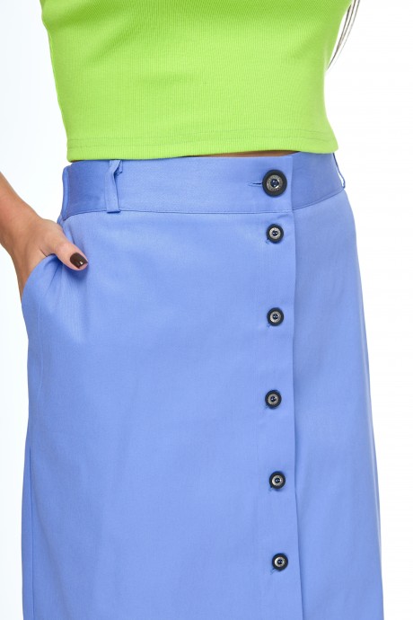Юбка прямая на притачном поясе с резинкой в области спинки. Боковые функциональные карманы. Застёжка на пуговицы по всей длине.