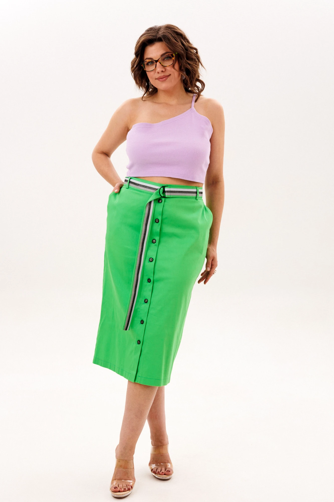 Состав юбки и жакета: хлопок 80% эластан 20%; Состав топа: хлопок 95% эластан 5%;