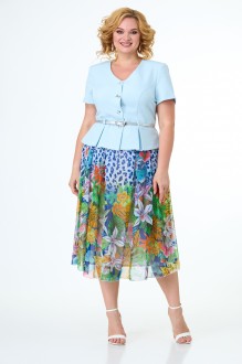 Комплект, состоящий из жакета и юбки. Выполнен из ткани с компаньоном в единой цветовой палитре.