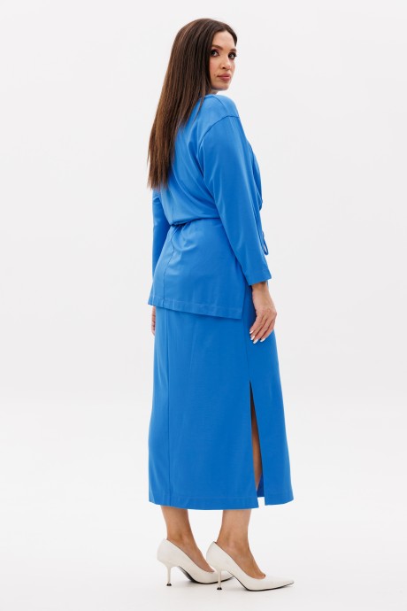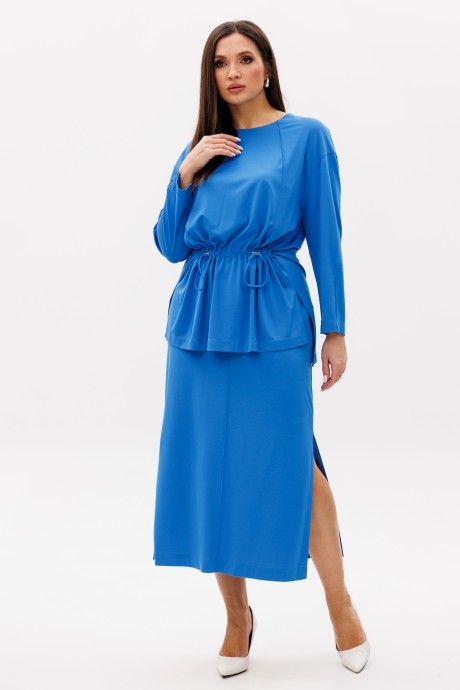 Трикотажный костюм с юбкой в текущем сезоне занимает лидирующие позиции как на модных подиумах, так и в наших модных гардеробах. Смотрится он в разы интереснее, чем брючный, не говоря уже о его женственности. Блуза свободного упрямлённого силуэта с заниженной линией плеча, круглым вырезом, рукавом, расширенным в области оката. Полочка с вертикальными рельефами-защипами от горловины и кулисой с регулирующими фиксаторами и шнуром. Спинка со средним швом, молнией и вытачками-защипами от линии горловины. Рукав с вытачкой-защипом от линии низа. Низ изделия разноуровневый. Юбка прямая, макси, с центральным защипом по переднему полотнищу, боковыми наклонными карманами, разрезом по боковому шву и эластичным поясом.