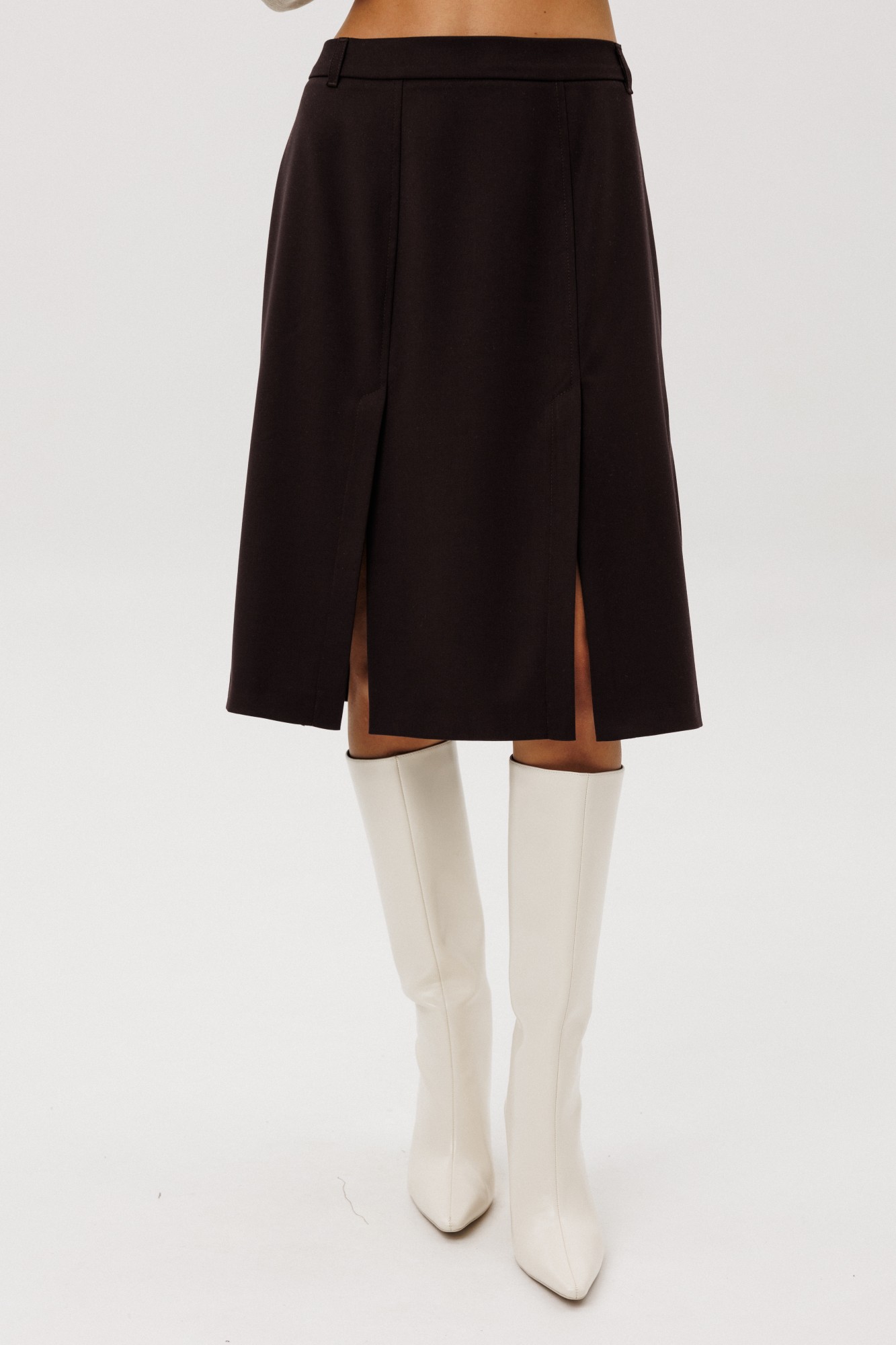 В центре — эффектная юбка-шестиклинка. Благодаря шести выразительным шлицам она красиво раскрывается при движении, подчёркивая плавность шага и создавая изящную женственную линию силуэта. Это та самая юбка, в которой вы выглядите элегантно при любой активности.