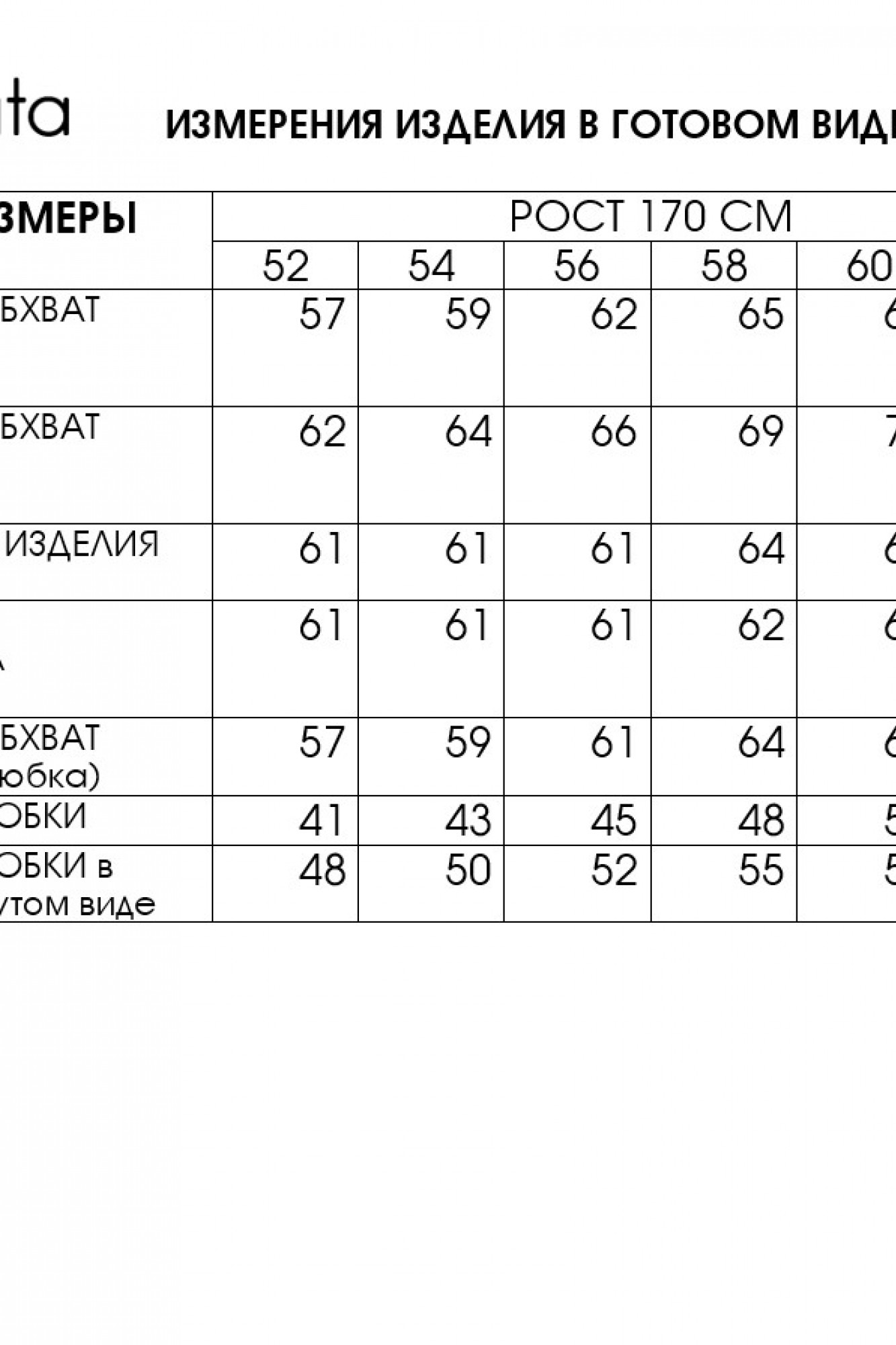 Таблица размеров