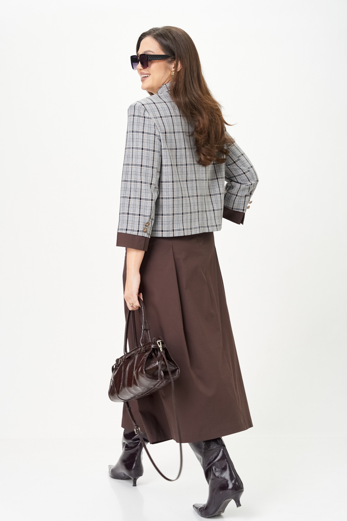 Юбочный костюм КаринаДелюкс М-1418 двойка серо-коричневый