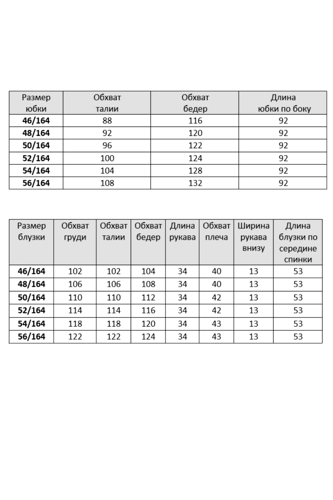 Таблица размеров