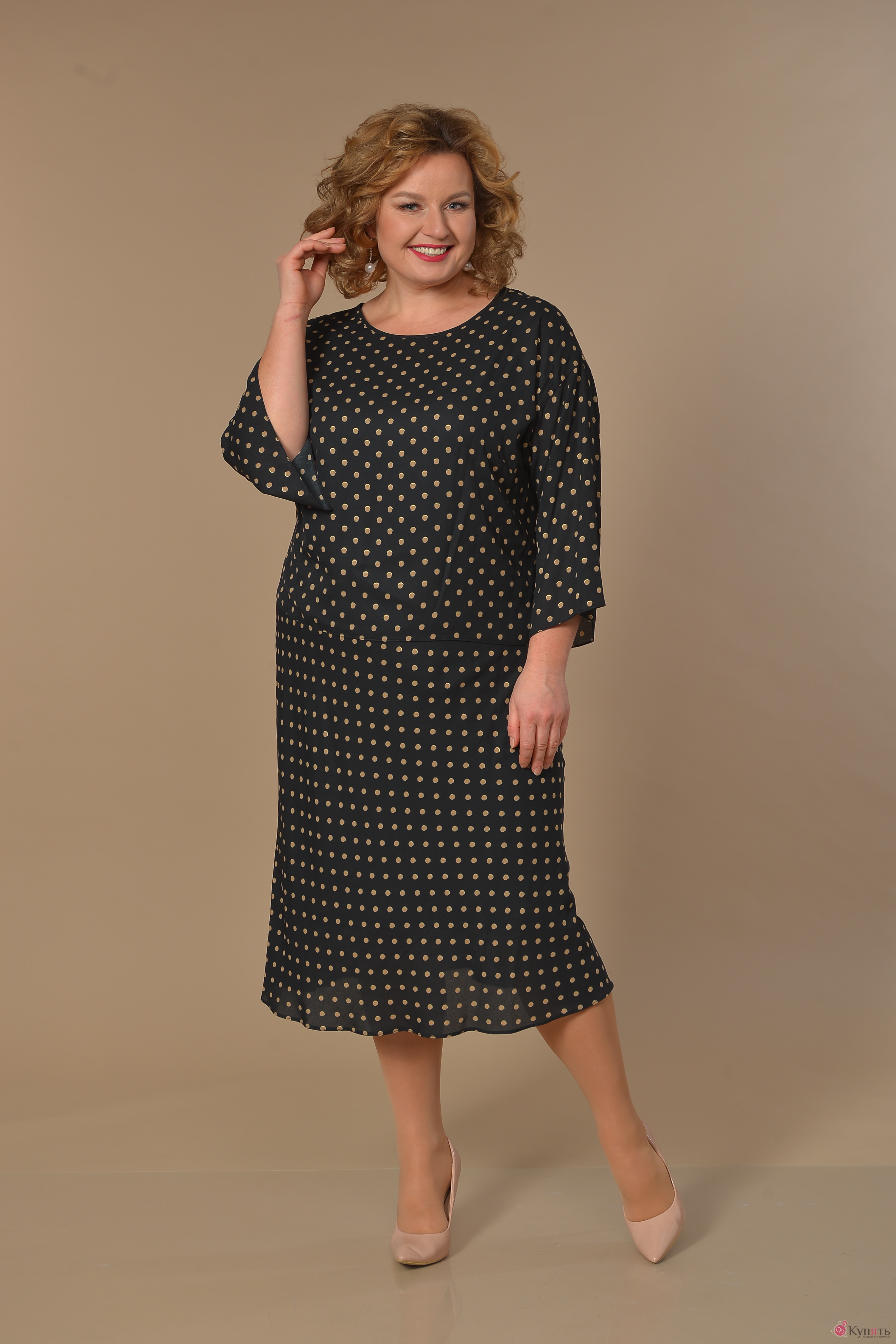 Юбочный костюм Lady Style Classic 1640 чёрный с бежевым с ID товара 210964