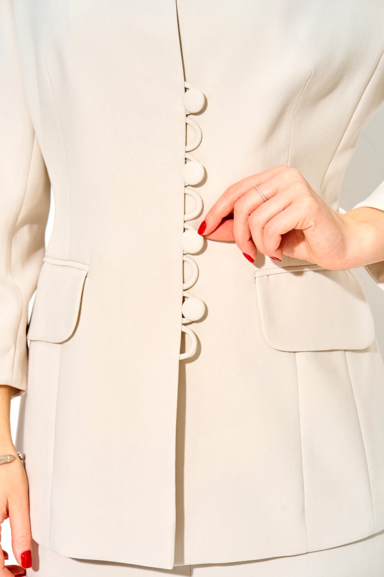 Откройте для себя изысканный юбочный офисный костюм от LAIKONY премиум класса, который станет настоящим акцентом вашего гардероба! Жакет прилегающего силуэта идеально сидит на фигуре и подчеркивает её достоинства. Длина ниже линии бедер. С центральной застёжкой на пуговицы и навесные петли, жакет не только практичен, но и привносит нотки утончённости в ваш образ. Его детали, включая отрезные бочки и фигурные клапаны, создают эффектный визуальный акцент, а таллиевые вытачки добавляют изысканности и облегают фигуру. Спинка жакета с плечевыми вытачками и средним швом. Втачные рукава длиной 3/4 с аккуратными складками на обтачке придают образу лёгкость и стиль. Юбка облегающая вверху и прямая к низу, с притачным поясом и потайной молнией в левом боковом шве. Переднее полотнище с вытачками и шлицей обеспечивает свободу движений, а заднее полотнище с четырьмя вытачками создаёт идеальный силуэт. Костюм выполнен из костюмной ткани, жакет на подкладке. Декор может отличаться от представленного на фотографии. Этот костюм – идеальное сочетание для создания стильного и женственного образа, который будет уместен как на деловой встрече, так и на вечернем выходе. Позвольте себе блистать с LAIKONY!