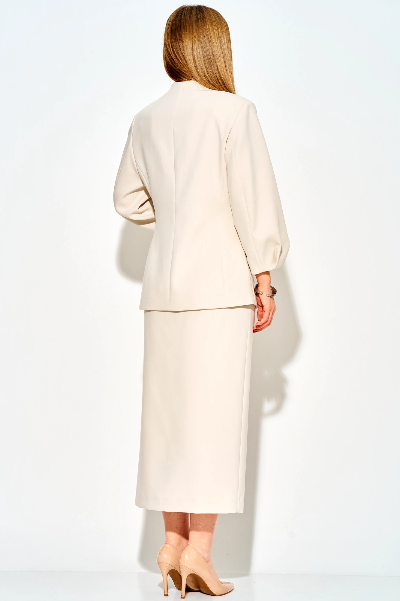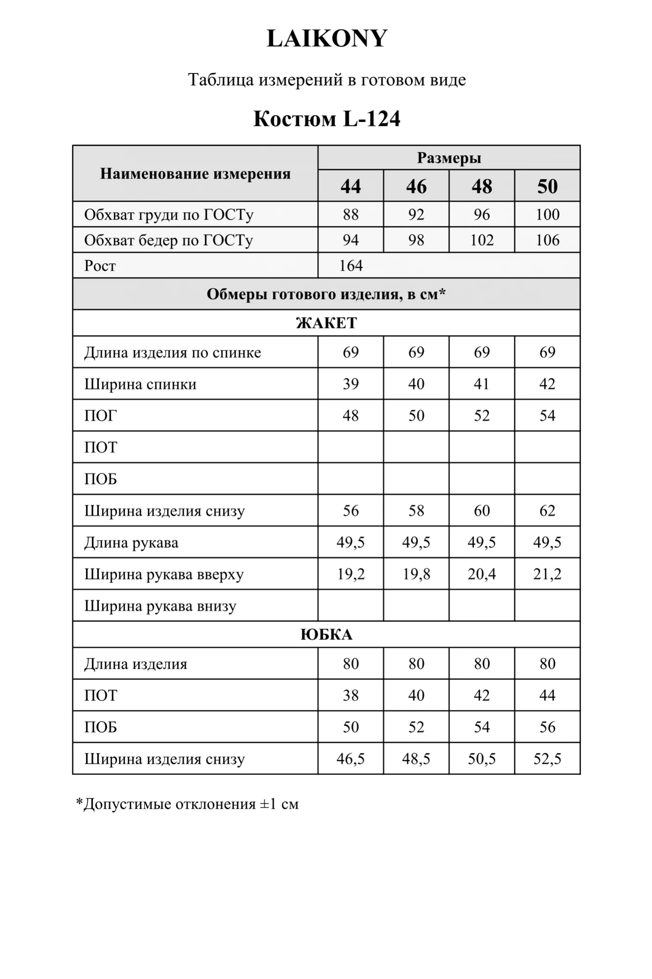 Длина жакета по спинке 69 см, длина рукава 49,5 см. Длина юбки 80 см.