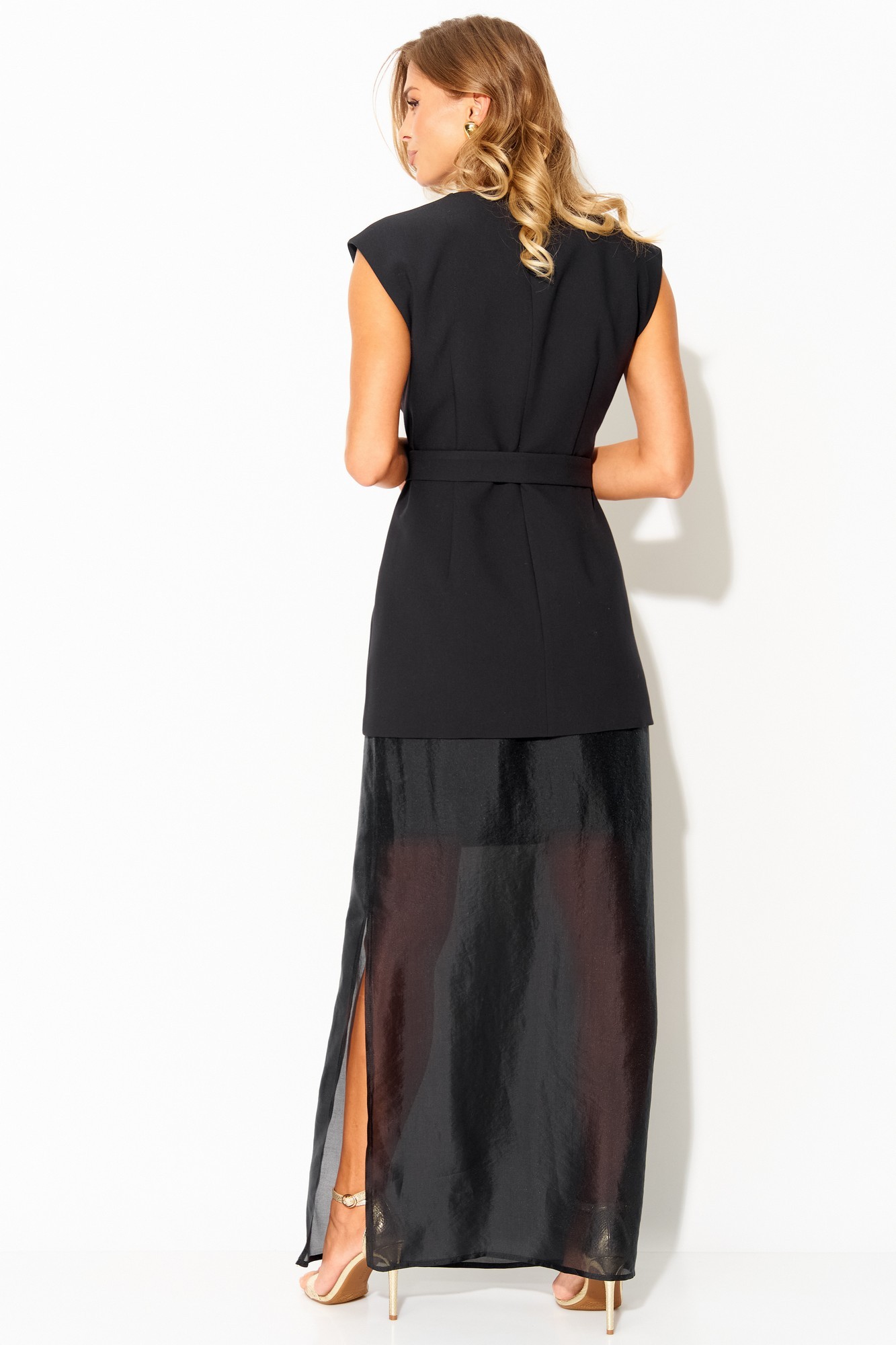 Нарядный юбочный комплект от LAIKONY, состоящий из жилета из костюмной ткани и полупрозрачной юбки из тенсела. Жилет полуприлегающего силуэта, на подкладке. Вырез горловины округлой формы, застежка на потайную тесьму-молнию в среднем шве спинки. Детали переда жилета со средним швом, таллиевыми вытачками, нагрудными вытачками и с вытачками на линии груди, исходящие от среднего шва. Деталь спинки жилета с таллиевыми вытачками и со средним швом. Под проймами расположены «ластовицы». Декор может отличаться от представленного на фотографии. Пояс в комплекте. Юбка двухслойная: верхняя - длиной «в пол», выполнена из тенсела, нижняя – выше коленей, выполнена из костюмной ткани. Сверху юбки соединены притачным поясом, застежка на потайную тесьму-молнию в левом боковом шве. Наш очаровательный комплект будет актуален как на новогоднем корпоративе, так и на любом другом торжественном мероприятии!
