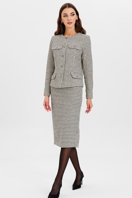 Юбочный костюм Ларс Стиль 1007 бежевый, черный