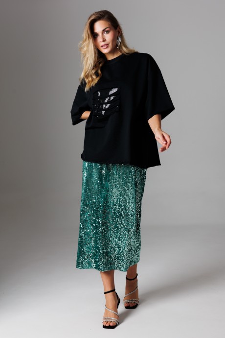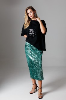 Юбочный костюм Ларс Стиль 1023 черный, изумрудный