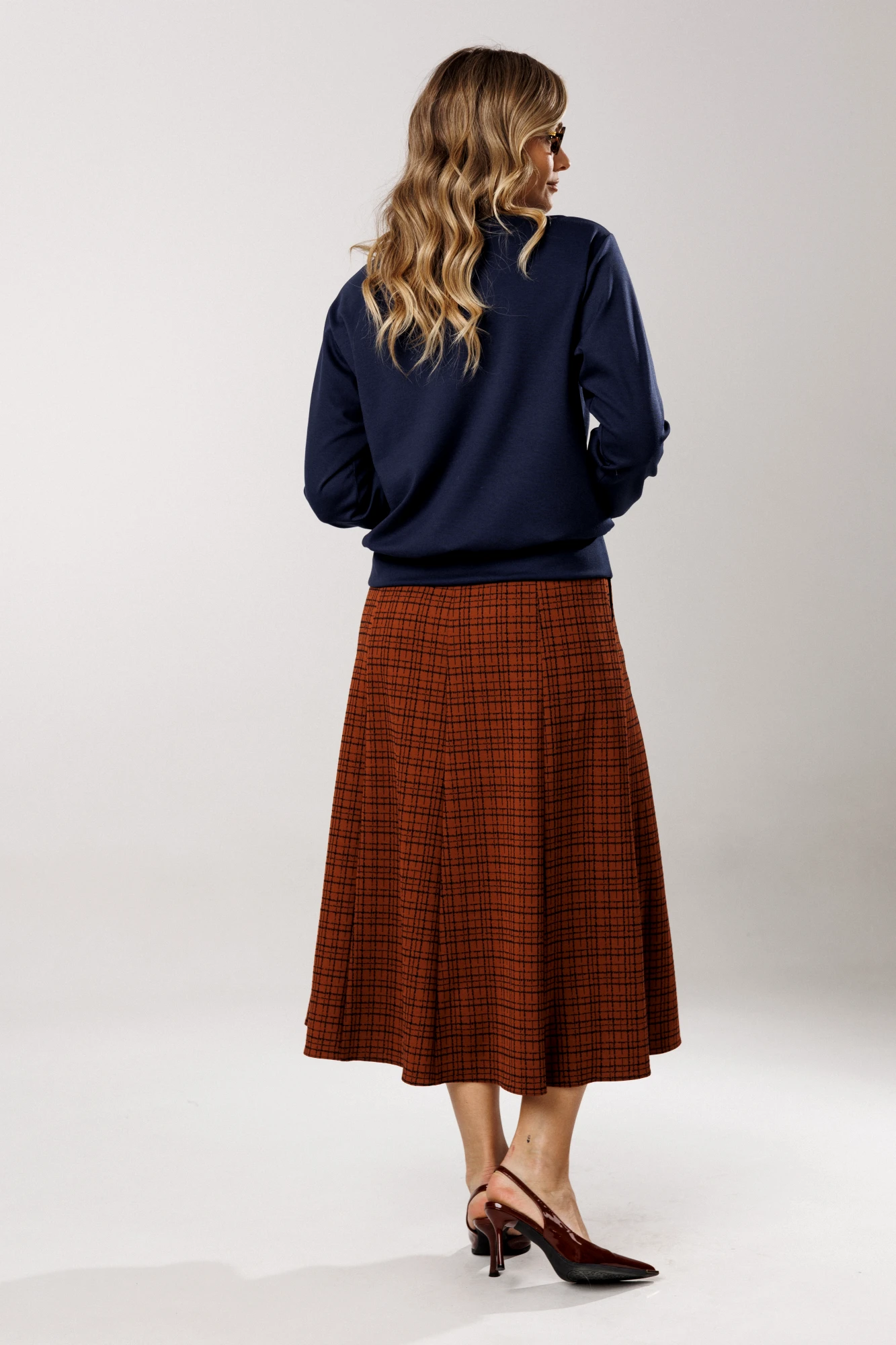 Юбочный костюм Ларс Стиль 1205 терракотово-синий, принт