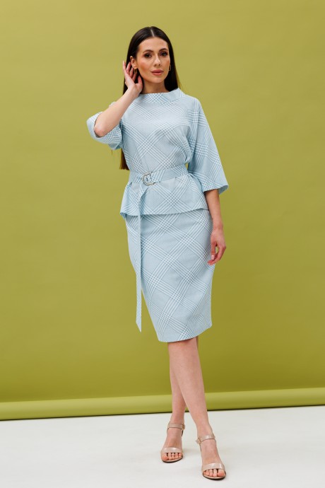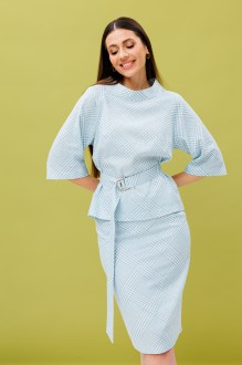 Юбочный костюм Ларс Стиль 888/1 молочно-голубой, принт ромбы