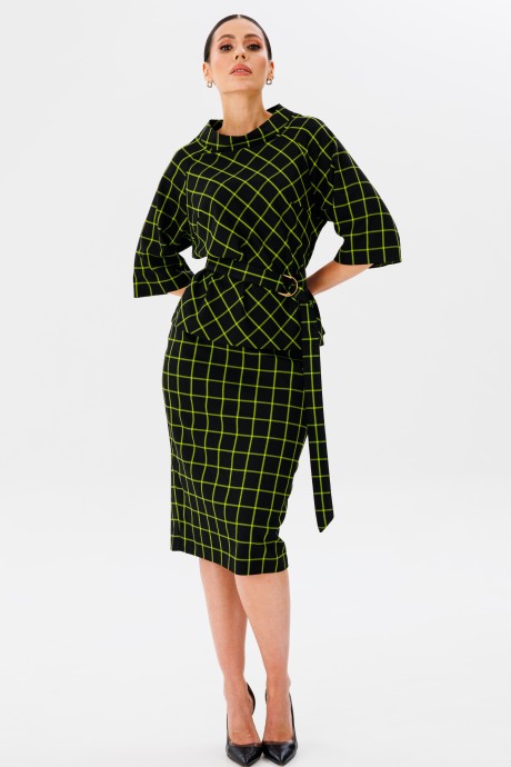 Юбочный костюм Ларс Стиль 944 чёрный, зелёный