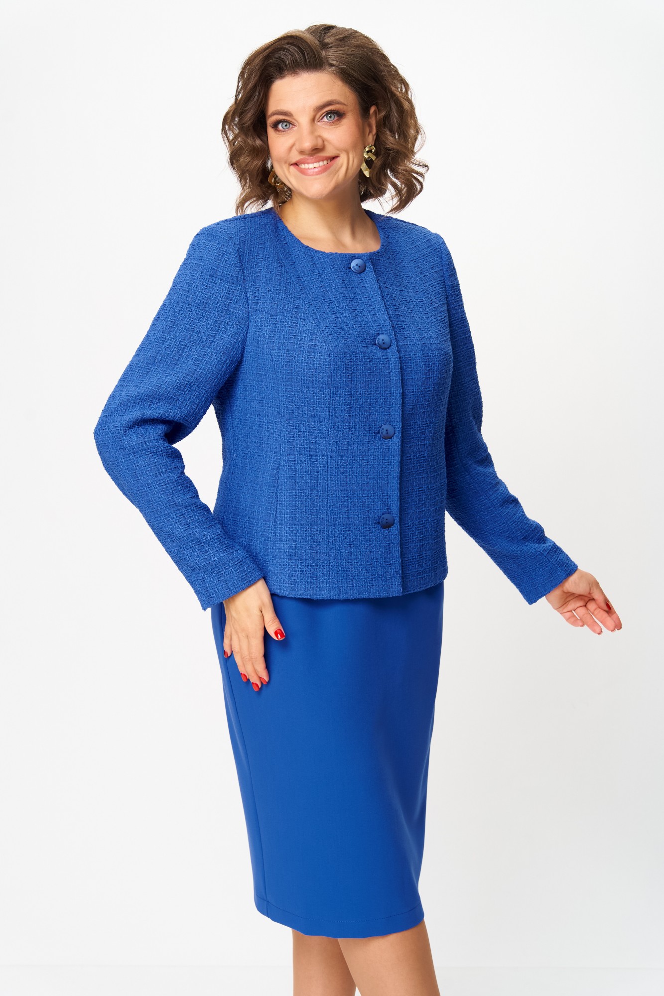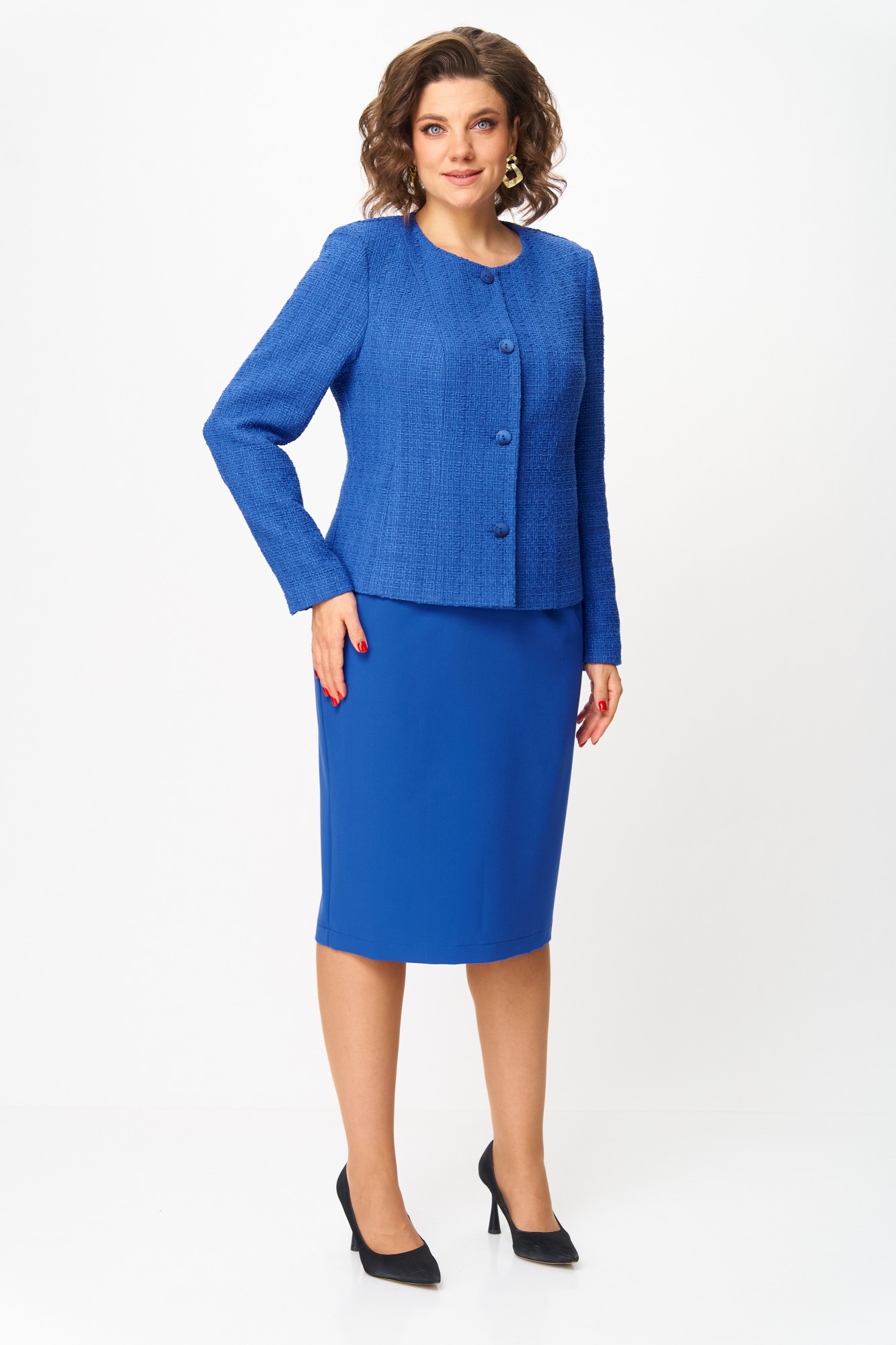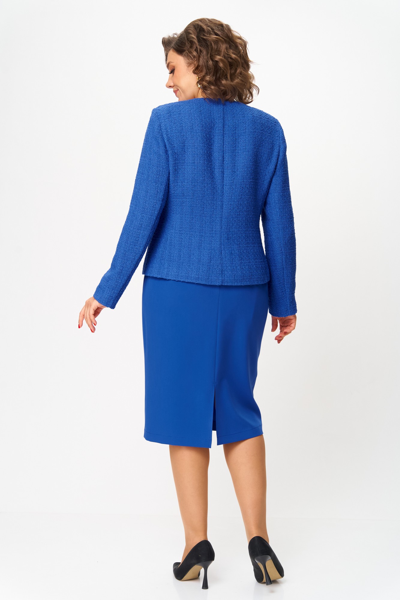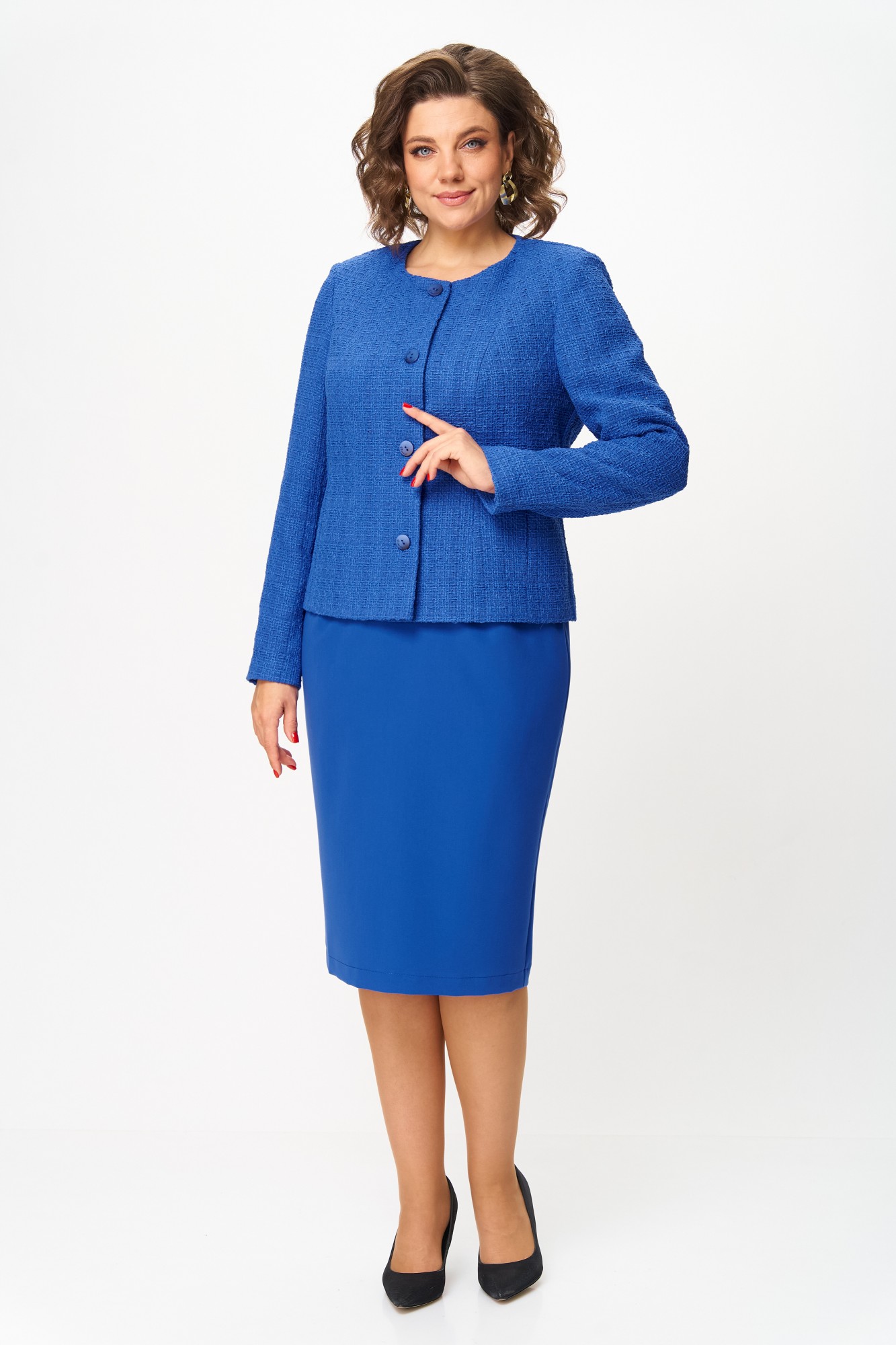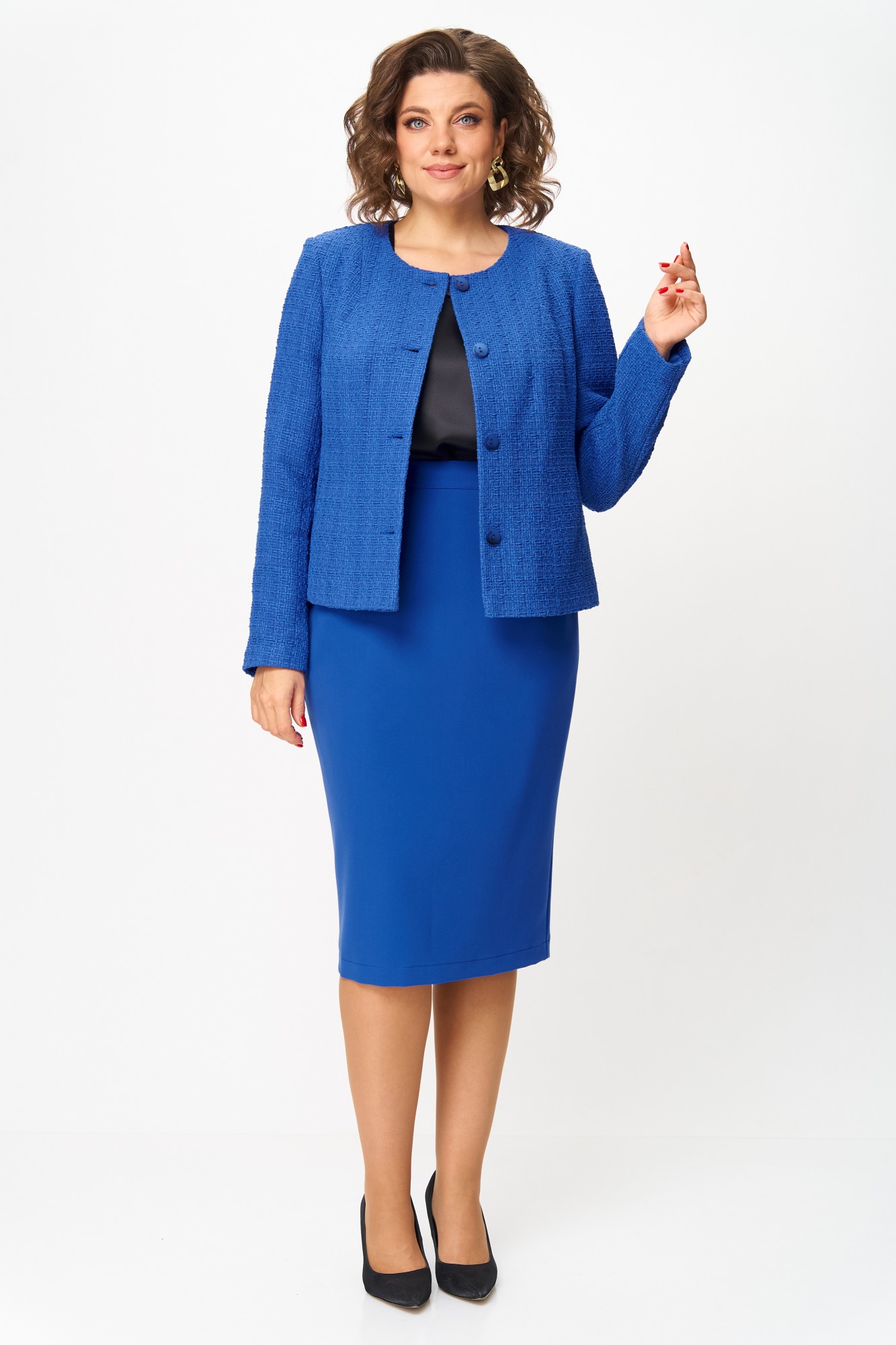 Элегантный и практичный комплект из коллекции осень 2025 года подчеркнет вашу индивидуальность и будет отличным выбором для создания делового и повседневного образа. Комплект выполнен из качественного твида и однотонной костюмной ткани идеально сочетающихся между собой по цвету. Состав тканей обеспечивает комфорт и приятные тактильные ощущения. Комплект состоит из жакета и юбки. Жакет выполнен из твида, юбка из однотонной костюмной ткани. Жакет полуприлегающего силуэта. Полочка жакета с вертикальными рельефами и прорезным карманом в рельефе. Горловина круглой формы. Застежка однобортная на петли и пуговицы. Спинка со средним швом, вертикальными рельефами. Рукав втачной, двухшовный, длинный. Жакет на подкладке. Юбка прилегающая по бедрам, зауженная к низу. Передняя часть юбки с таллиевыми вытачками. Задняя часть юбки с таллиевыми вытачками и со средним швом, в верхней части которого обработана застежка на потайную молнию, в нижней части разрез. Юбка на притачном поясе, с эластичной тесьмой и застежкой на петлю и пуговицу. Юбка на подкладке.