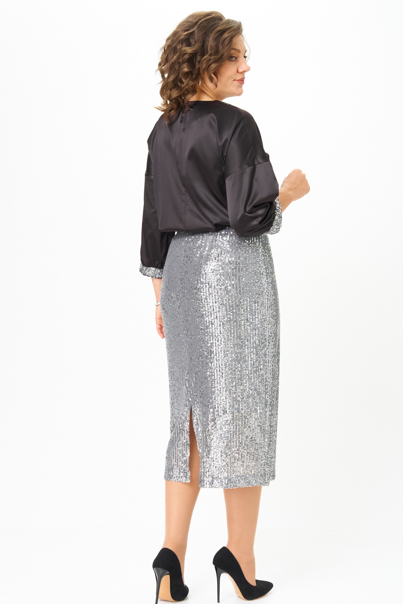 Юбочный костюм ANDINA CITY 9089 двойка чёрный, серый