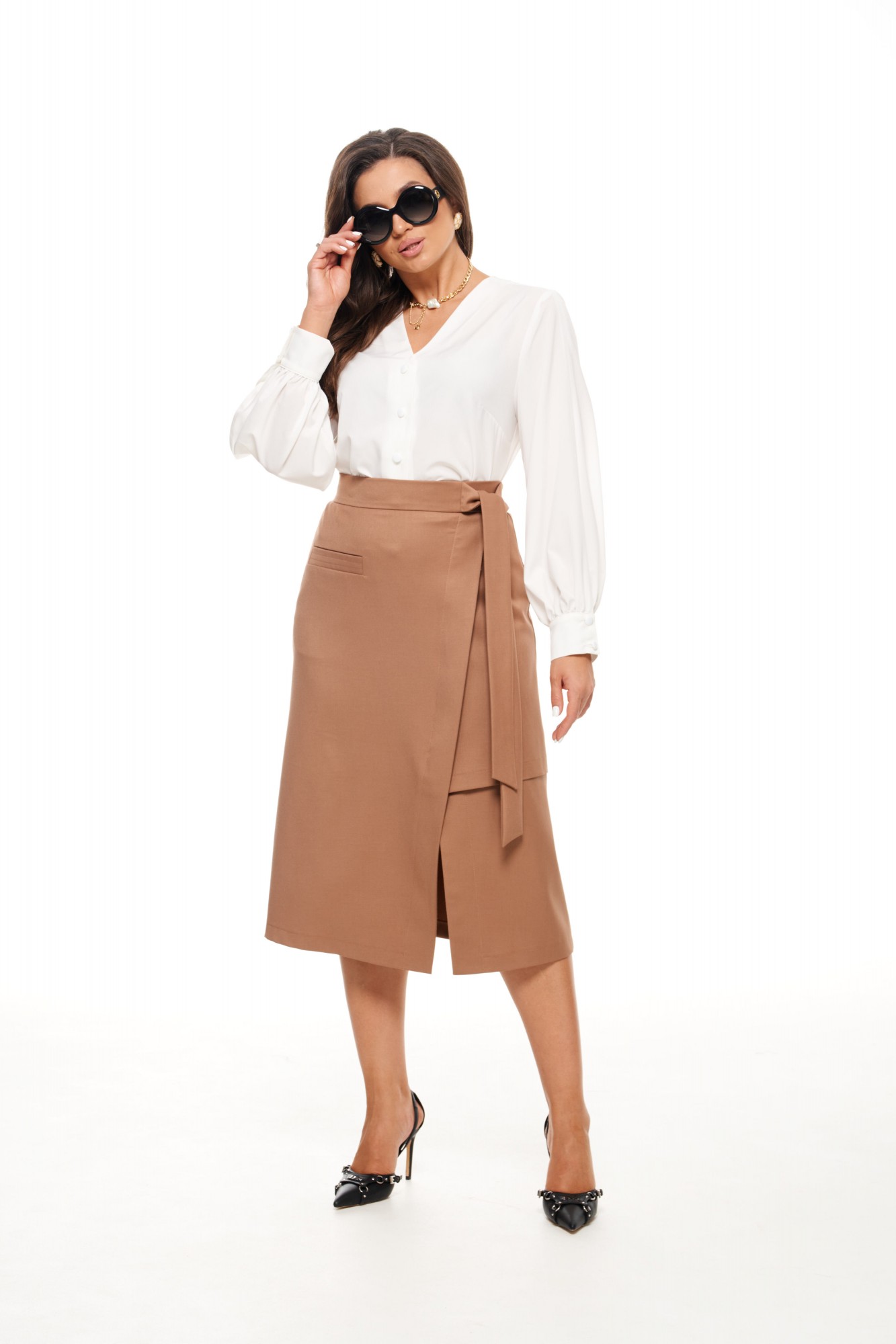 Юбочный костюм Beautiful&Free 6045 двойка белый+кэмел с ID товара 394684