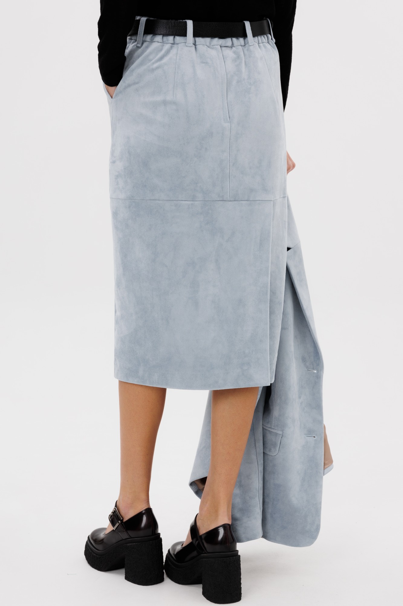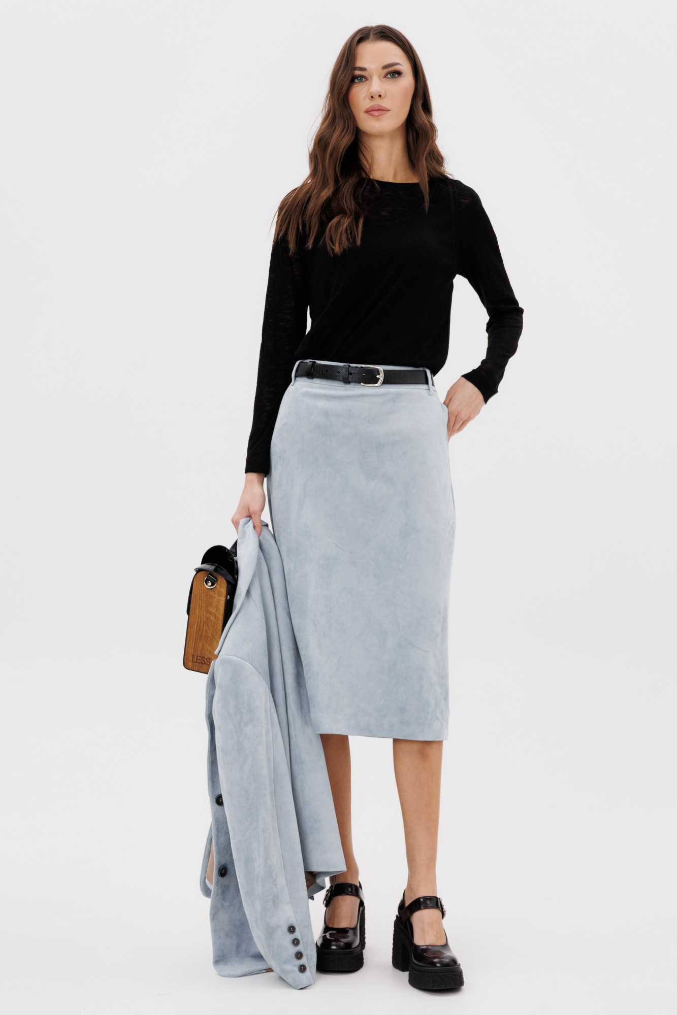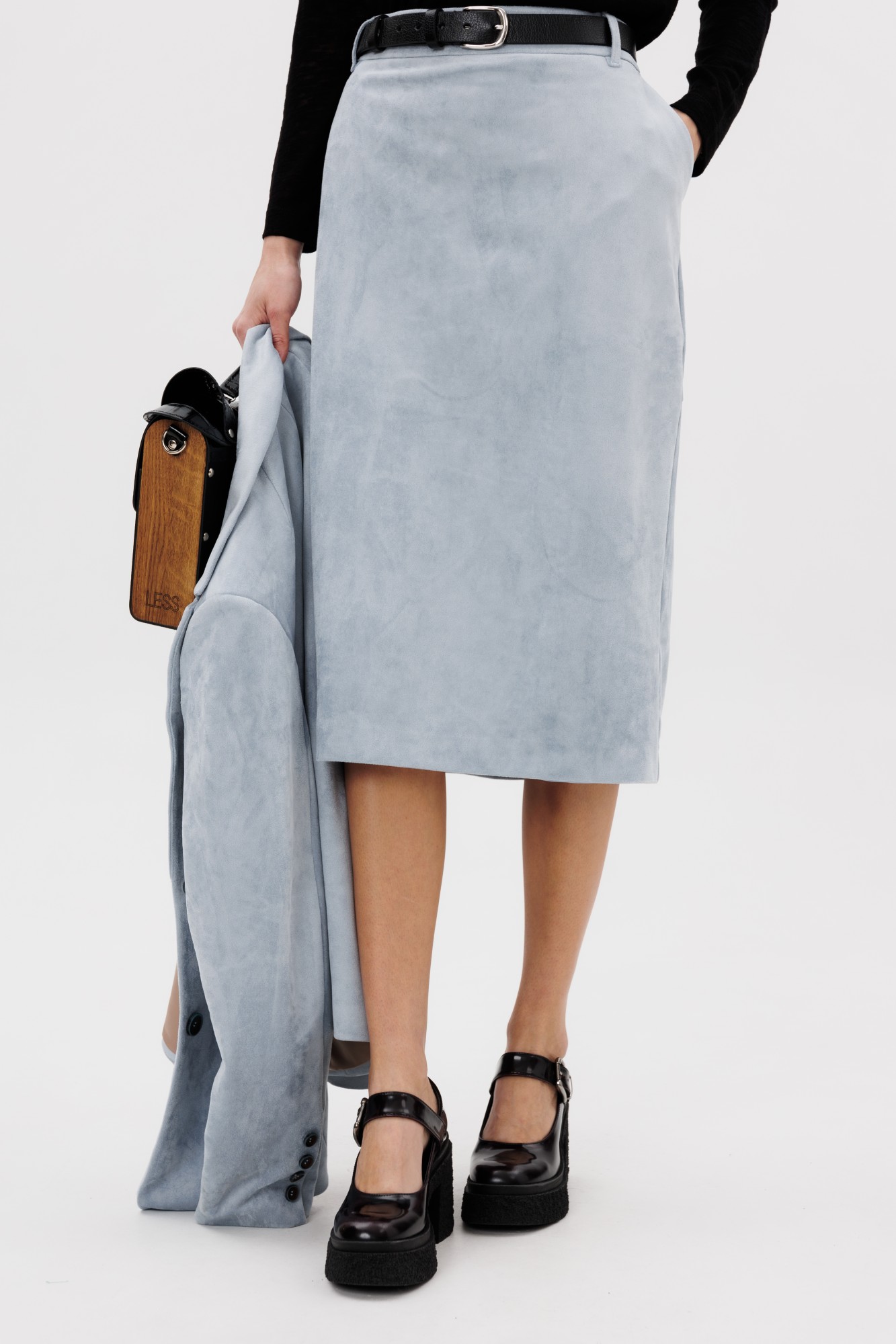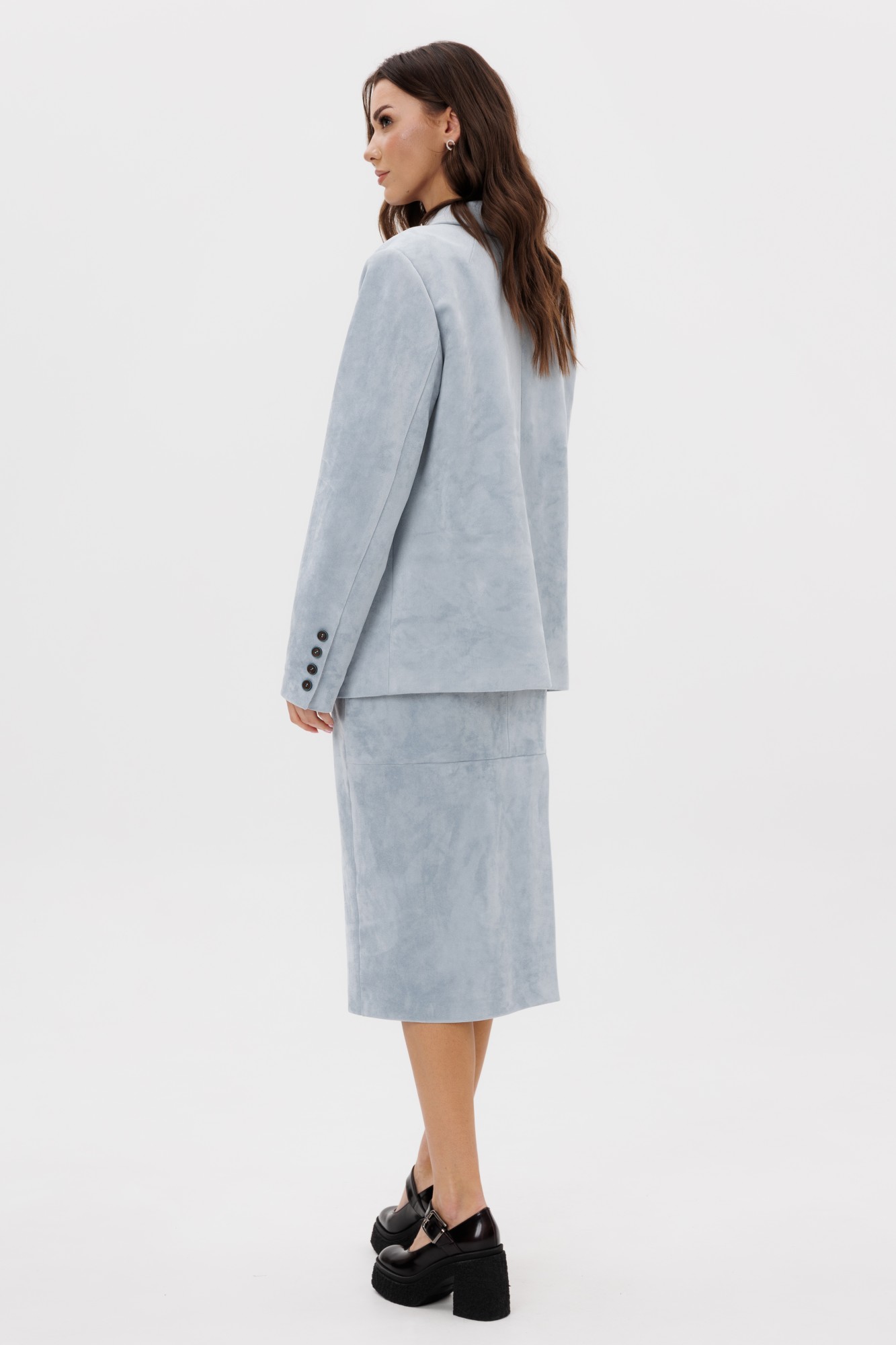 Весна меняет нам гардероб, хочется чего-то нового, свежего, необычного... И это повод, обзавестись костюмом из замши. Замша-главный хит весны 2025г., да и в осени он будет также актуален. Он всегда смотрится эффектно, особенно если одеться в нее с головы до ног. Отличным выбором станет юбочный костюм. Пиджак классического покроя, слегка упрямленный, с центральной застежкой, английским воротником и втачным двухшовным рукавом со шлицей. Полочка с нагрудной вытачкой, с прорезным карманом с рамкой и клапаном, отрезным бочком. На левой полочке оригинальный нагрудной карман с отделочной деталью. Спинка со средним швом и плечевой вытачкой. Юбка на притачном поясе, со шлевками, эластичном в области спинки, на комфортной трикотажной подкладке. Переднее полотнище с наклонными боковыми карманами, заднее с горизонтальным членением ниже линии бедер, сложной шлицей с запахом, центральным швом с застежкой.