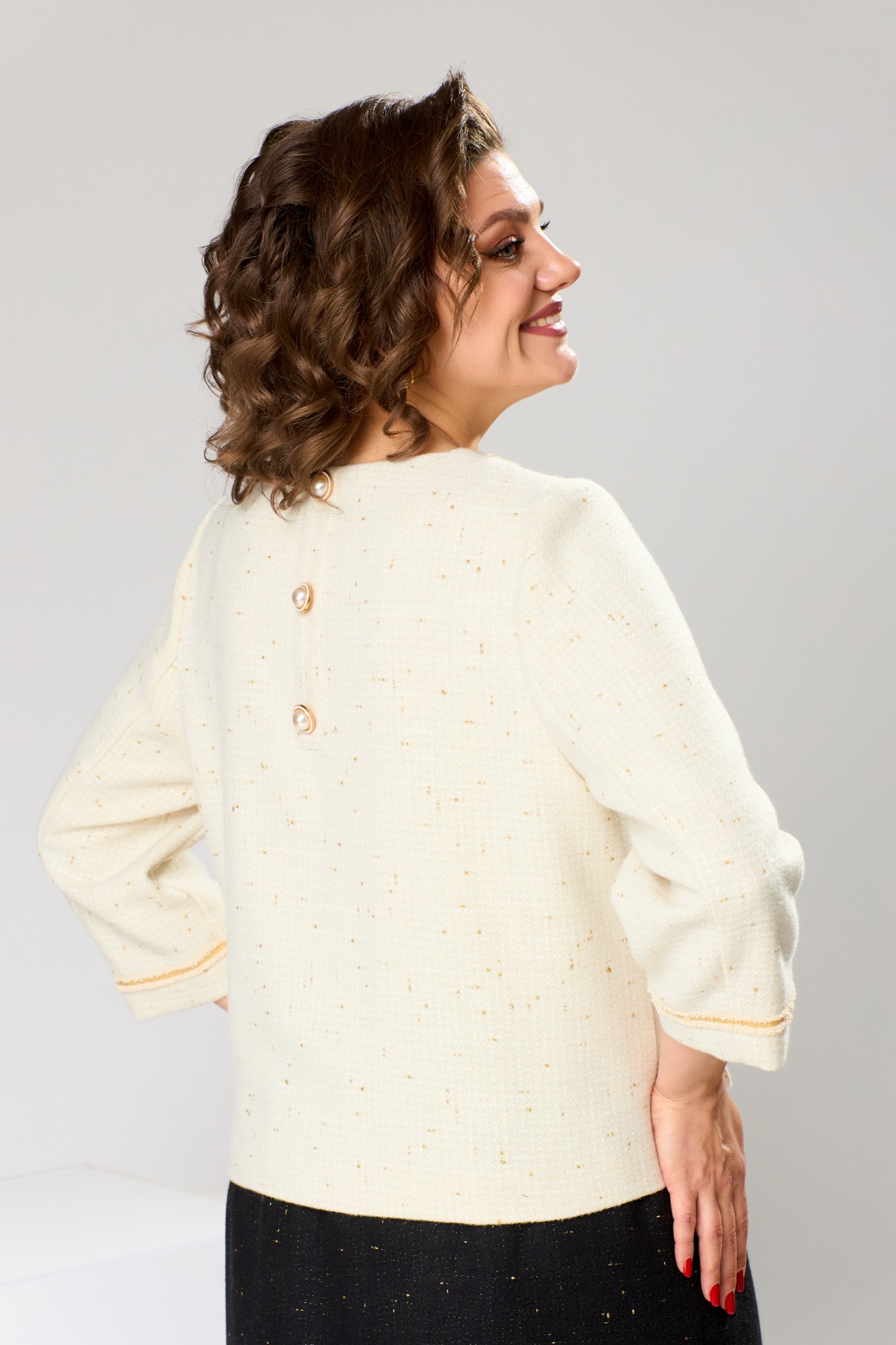 Длина по боковому срезу юбки 72 см, длина спинки блузона 53 см, длина рукава 48 см.