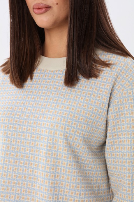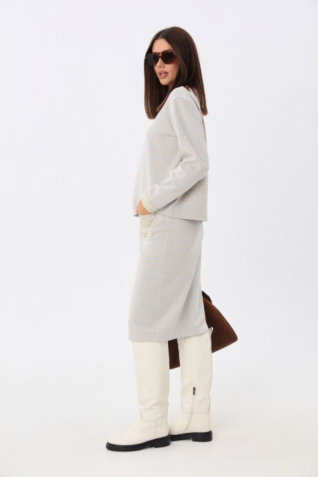 Трикотажный костюм 2ка , состоящий из джемпера и юбки. Джемпер прямого кроя свободного силуэта. Горловина и манжеты низа рукавов декорированы экокожей. Юбка-карандаш длиной ниже колена. По переду расположены карманы из мягкой экокожи. Рост фотомодели 175 см. Размер у фотомодели – 44.
