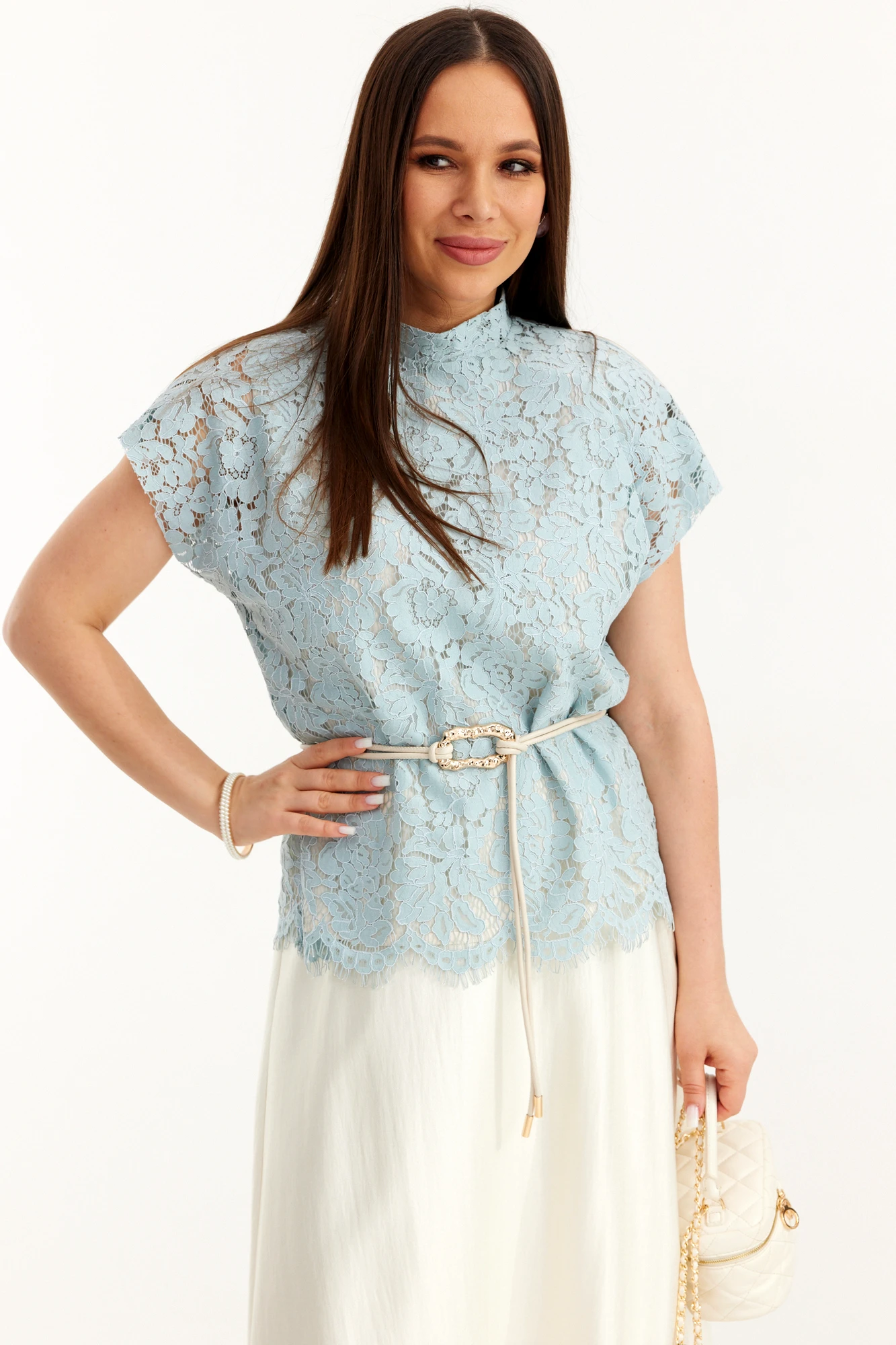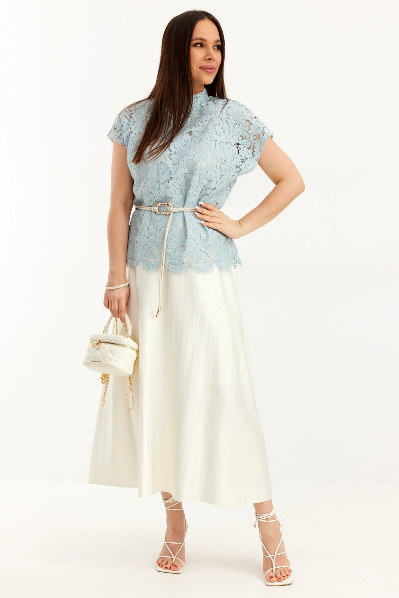 Юбочный костюм Магия Моды 2706 двойка голубой, молочный