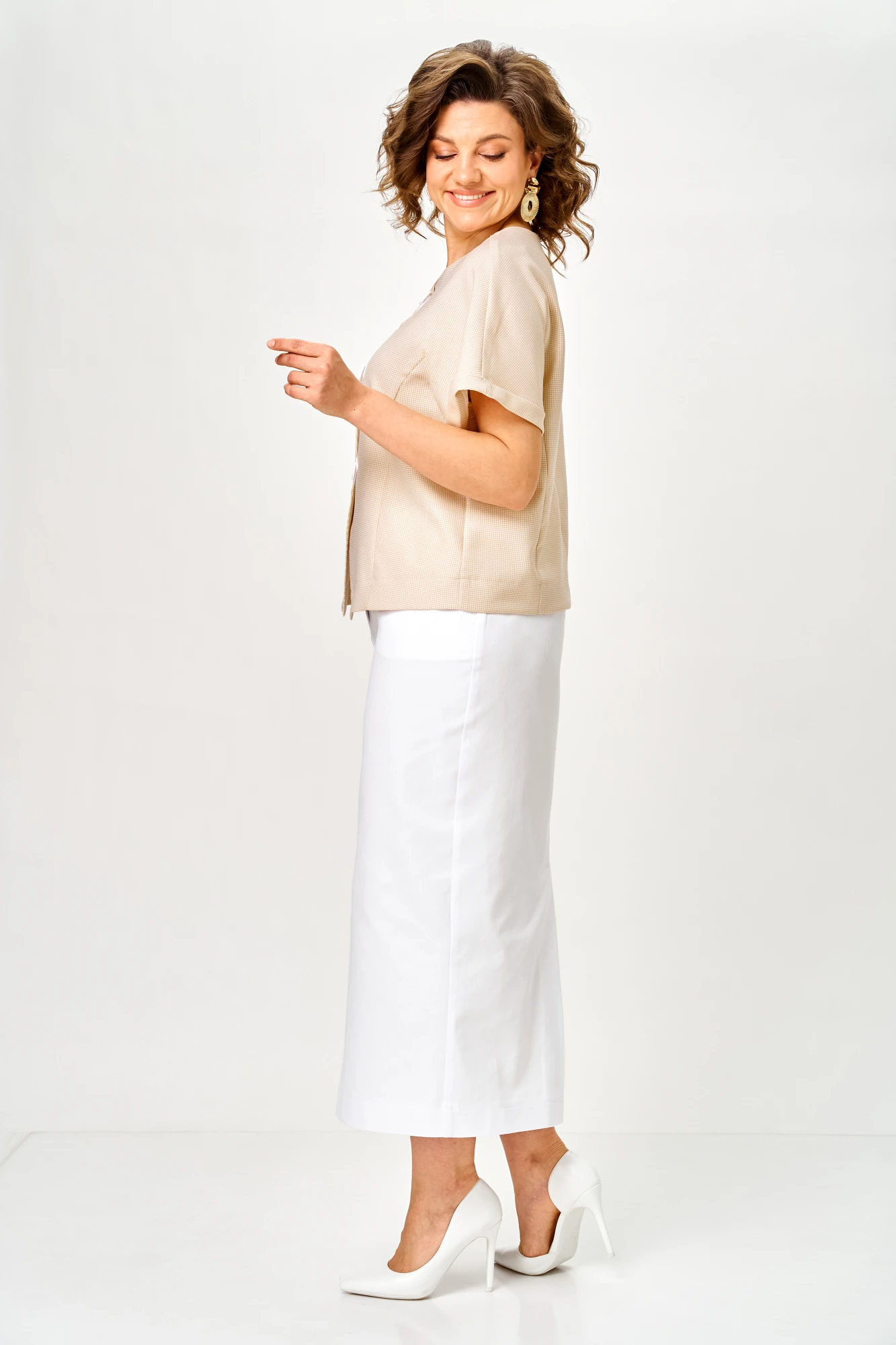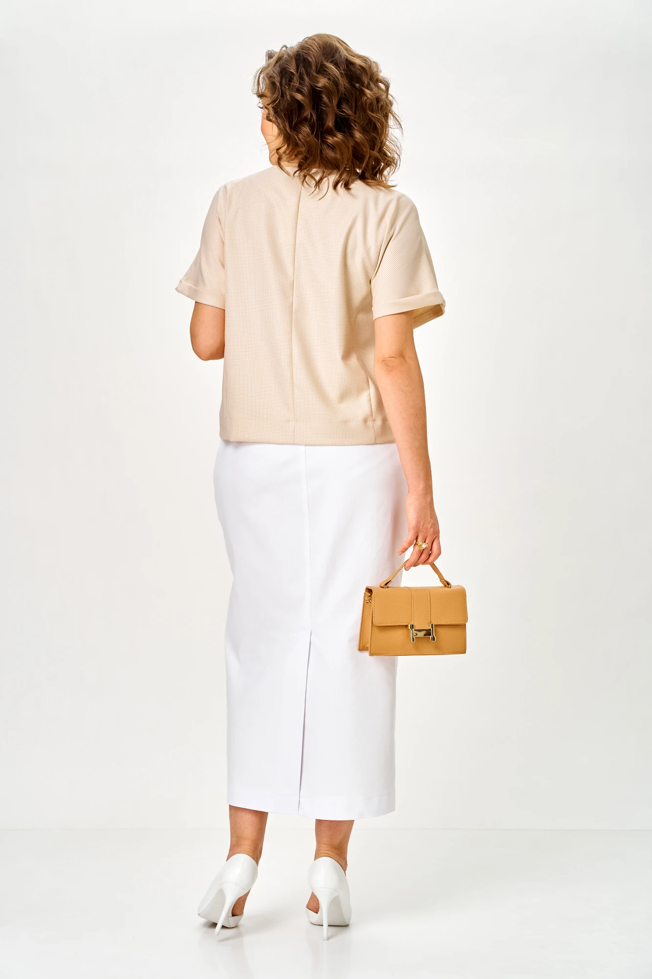 Юбочный костюм Michel Chic 1422 двойка карамель, белый