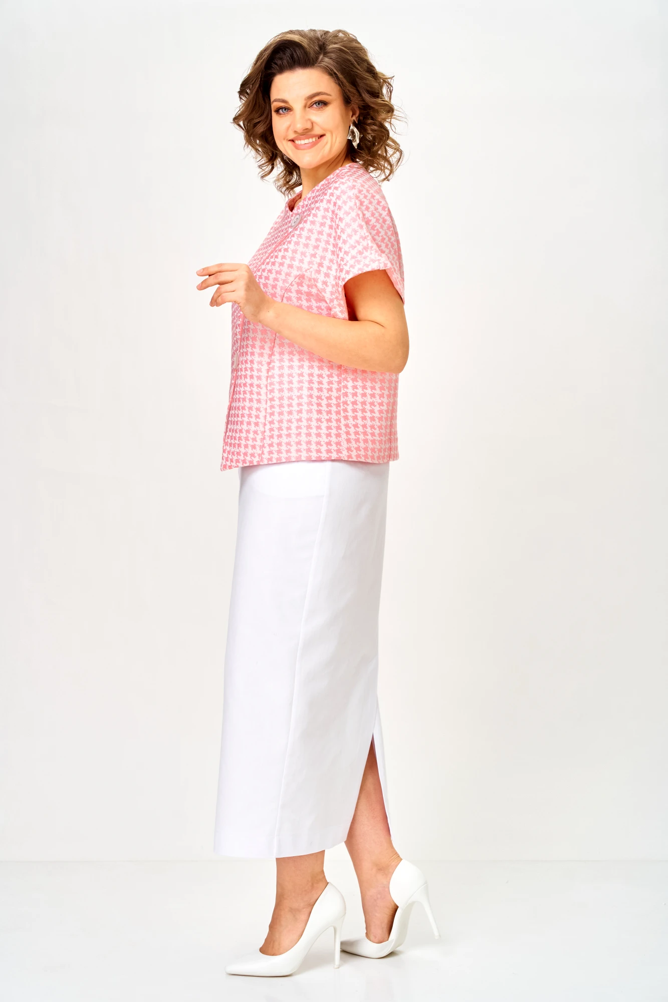 Юбочный костюм Michel Chic 1422 двойка розовый, белый