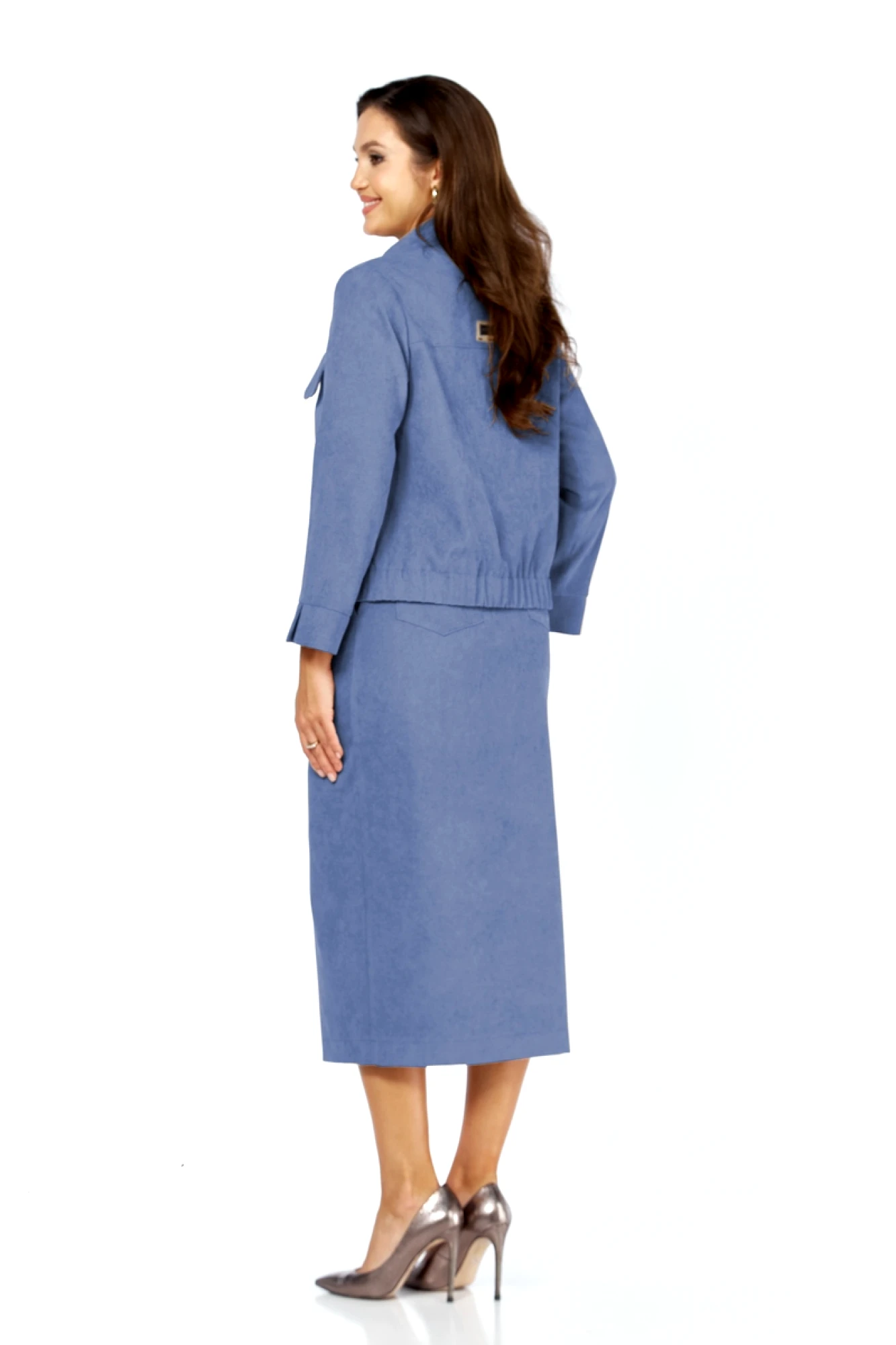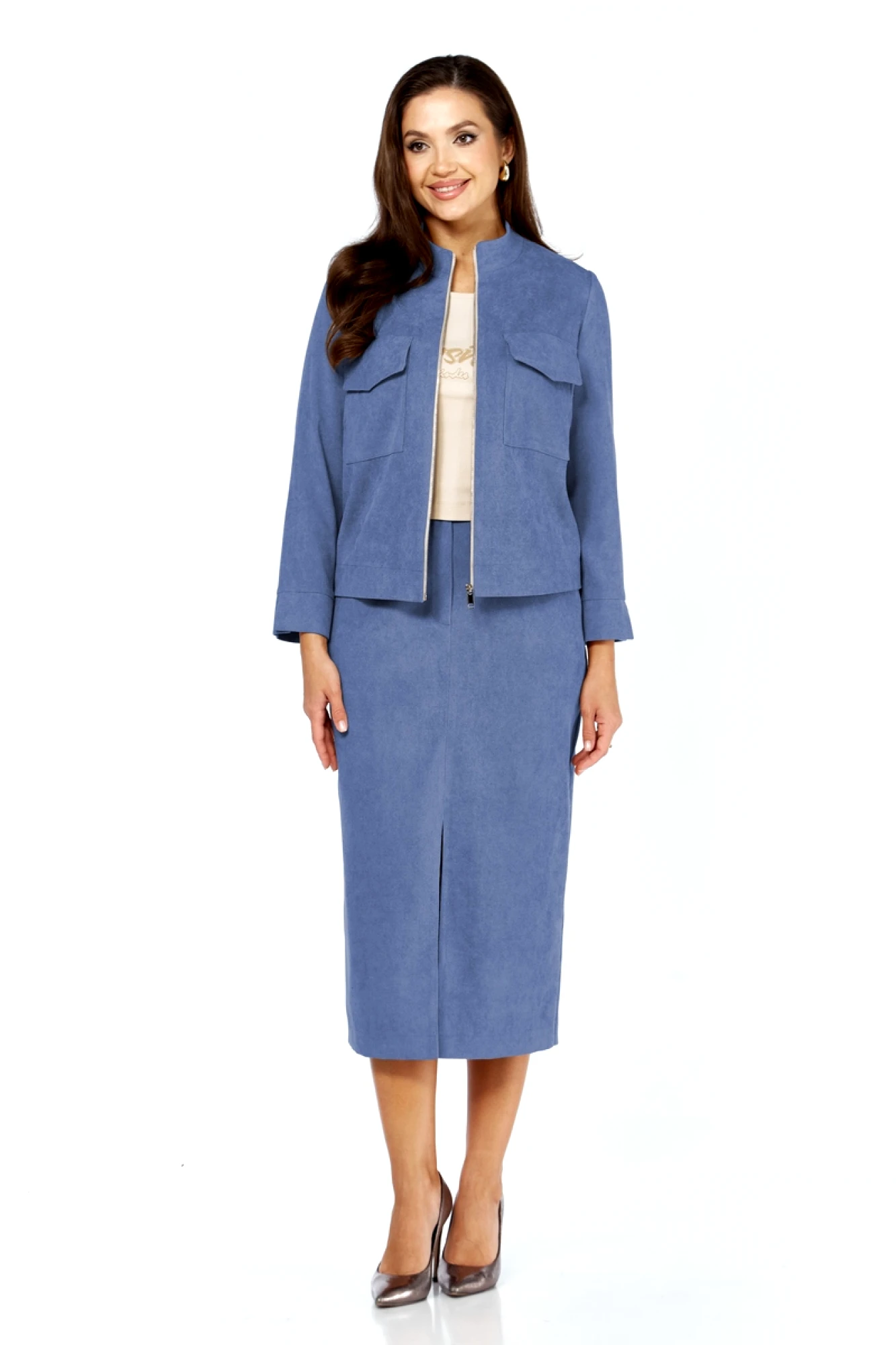 Юбочный костюм Милора Стиль 1381 тройка синий